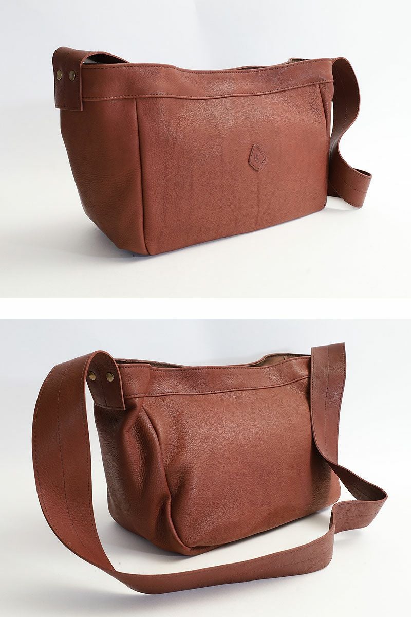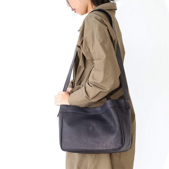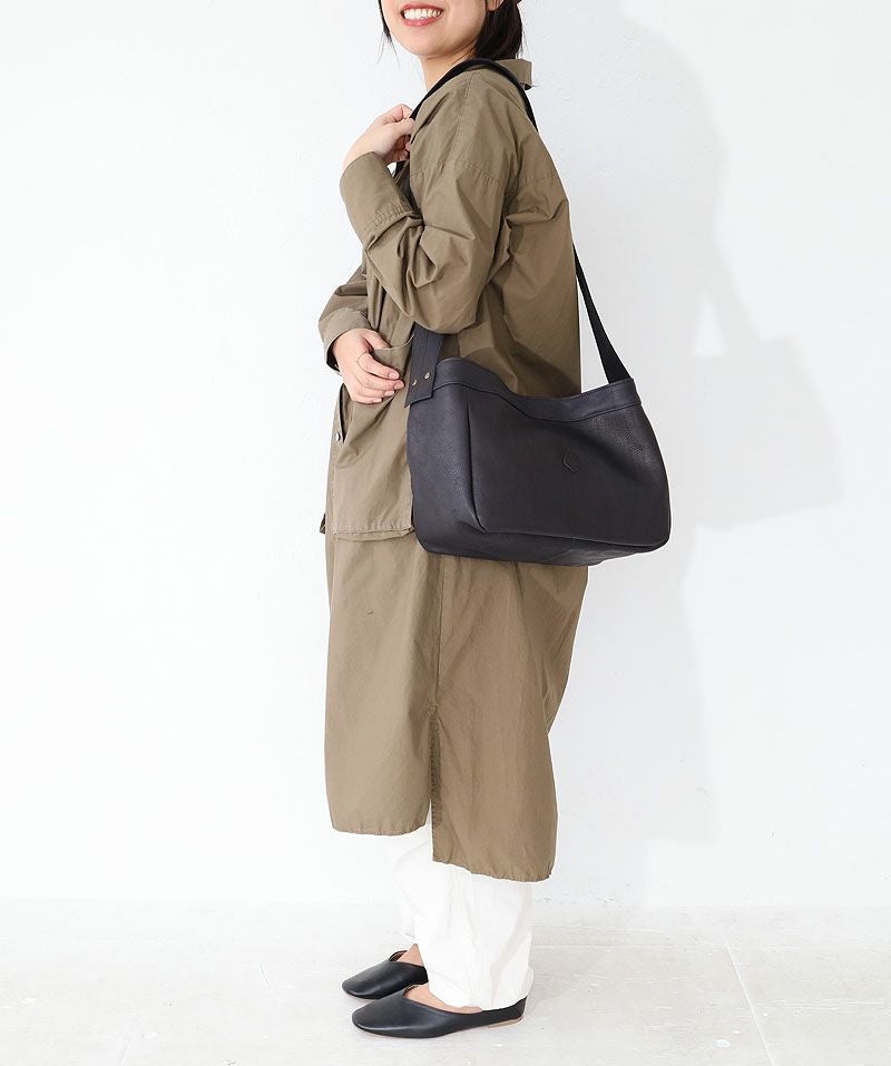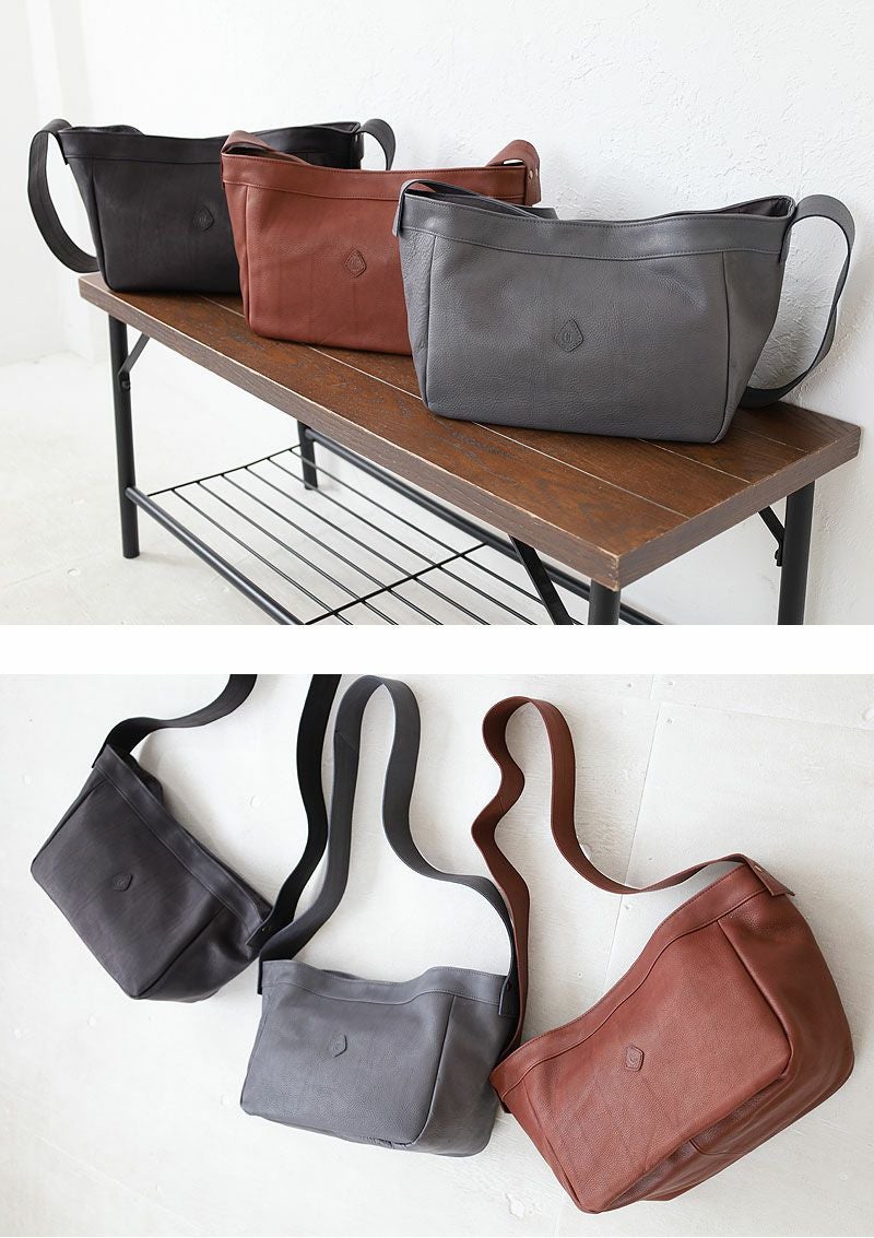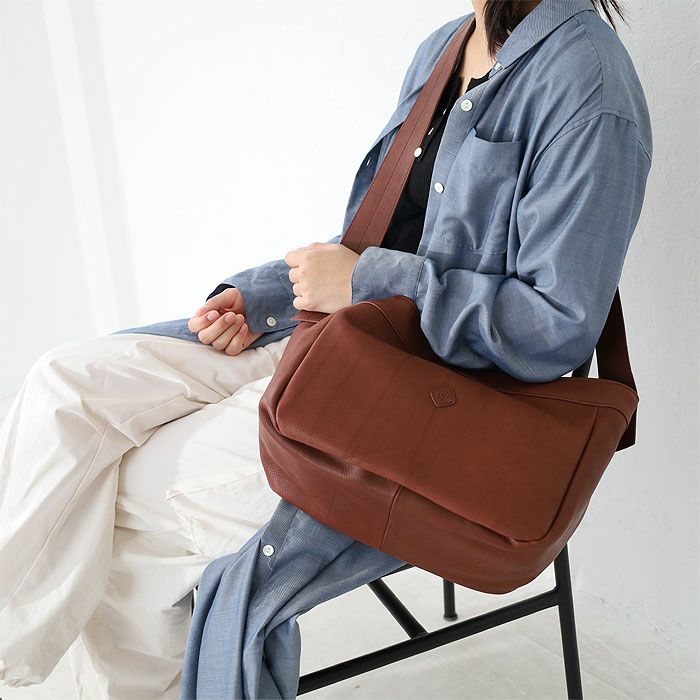モチーフは19世紀後半-20世紀初め頃に、欧米の新聞配達員が使っていた“ニュースペーパーバッグ”です。 多くの新聞を運べるように設計された大きなマチ幅、 肩に掛かる負担を軽減してくれるワイドなショルダー幅はそのまま。 カジュアルな印象の中に品の良さも感じさせてくれる、控えめな艶感が魅力のマットなレザーで仕立てました。 太めのショルダーテープが安定した持ち心地を実現。 軽量で柔らかな手触りの素材がやさしく身体にフィットし、快適なお出かけを叶えてくれそうです。 カラーバリエーションは温もりを感じるブラウン、クールなグレー、シックなブラックの全3色。 持つ人を選ばないベーシックなデザインのバッグは、パートナーとの兼用使いやお揃いとしてもおすすめです。
