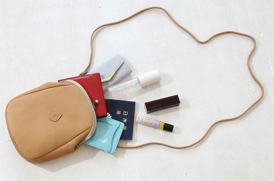 がま口を開けると、必要最小限のコンテンツを収められるスマートな収納スペースが。