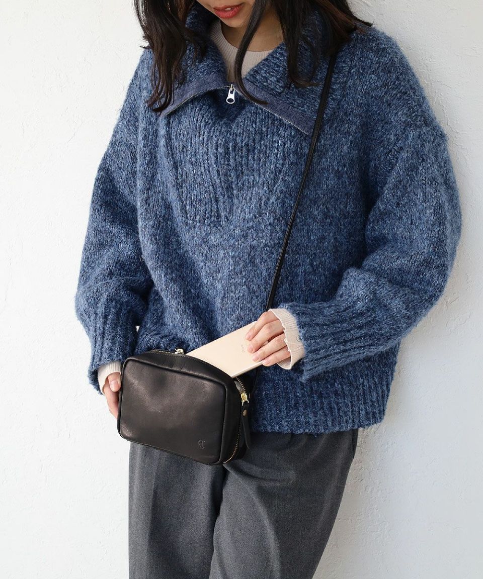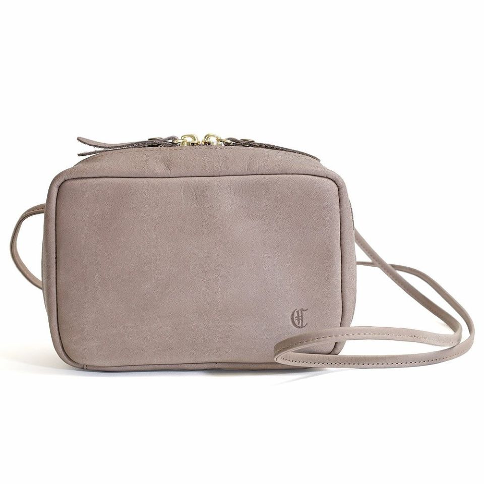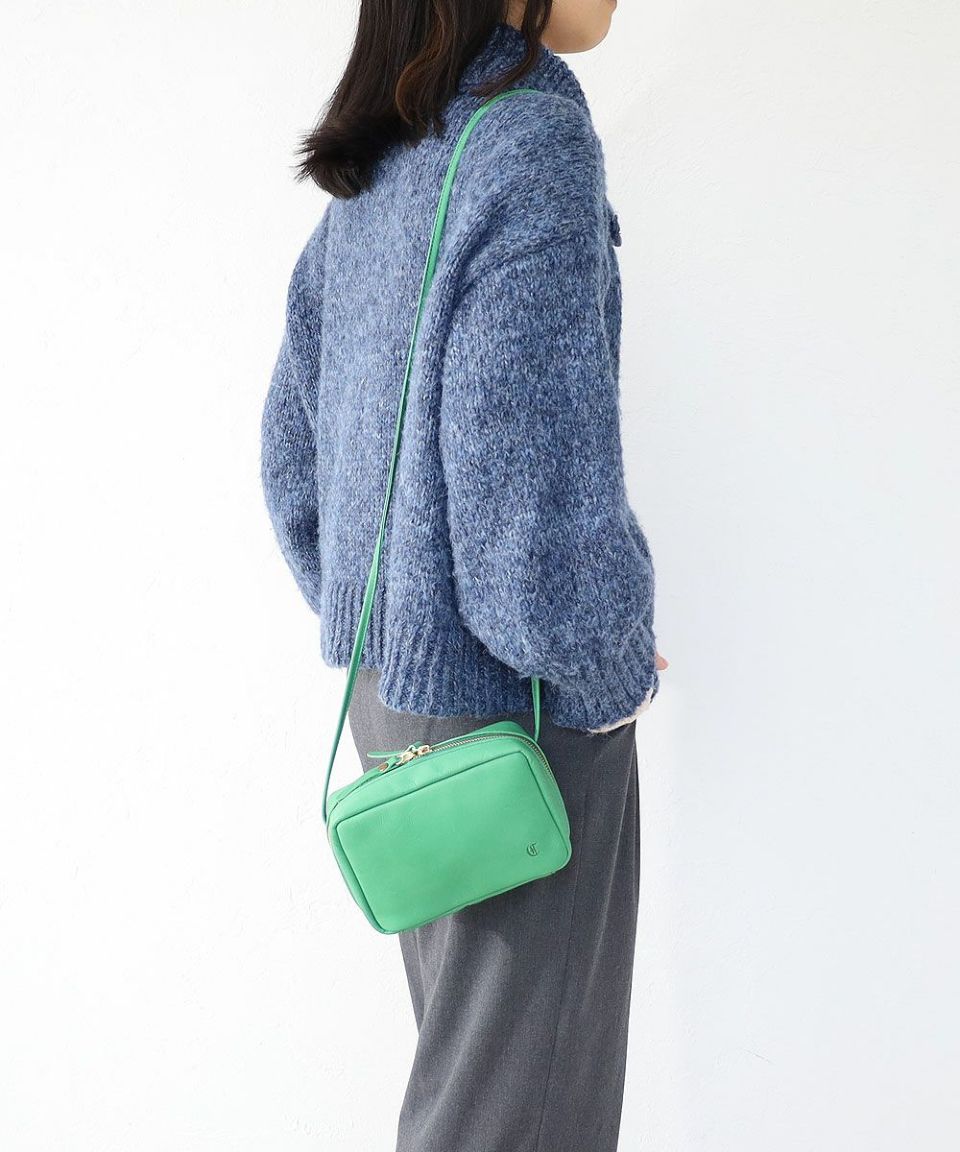 クールな箱型形状を、ナチュラルな風合いのレザーで可愛らしいサイズに。