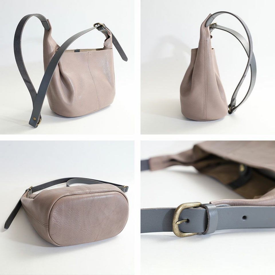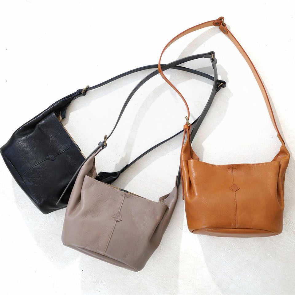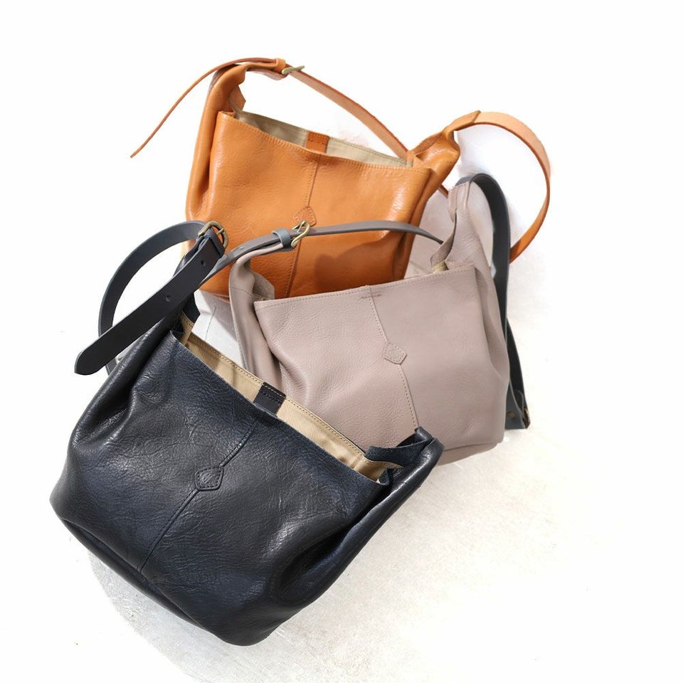 両サイドに大きく入ったタックに目を惹かれる、控えめに個性を放つショルダーバッグ。