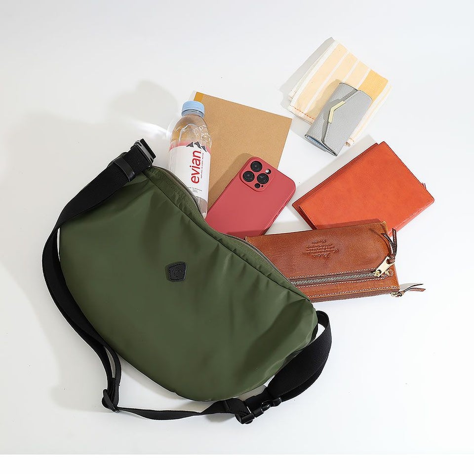 薄マチ設計で体にフィットし、動きやすさも抜群。やわらかな素材が荷物の形に沿ってなじみ、見た目以上の収納力を発揮します。