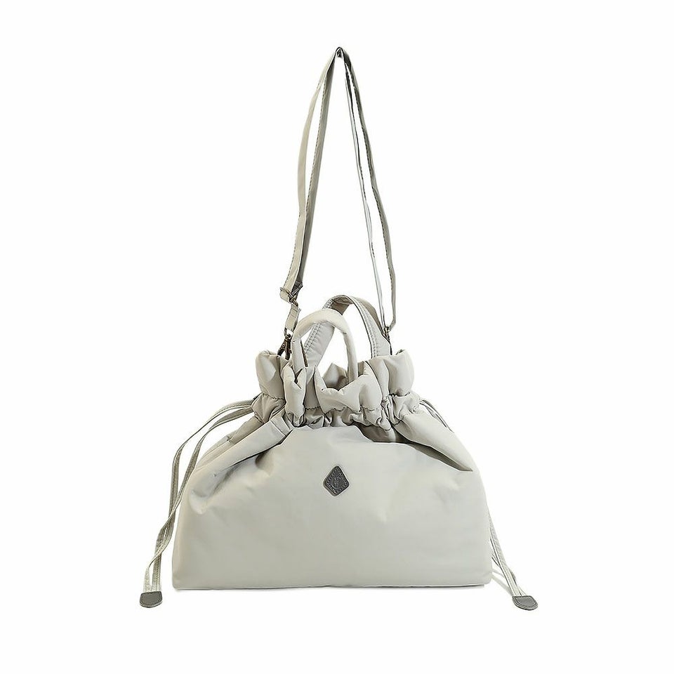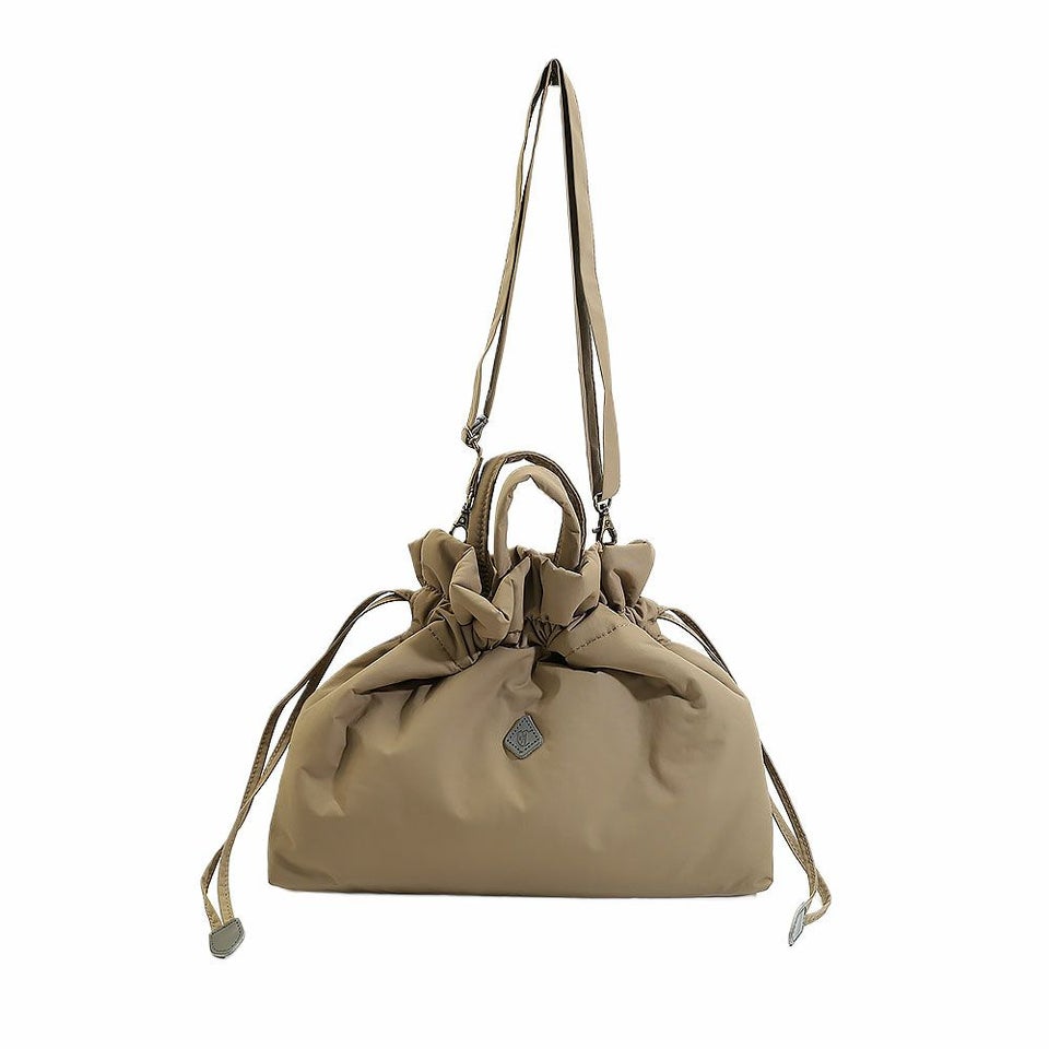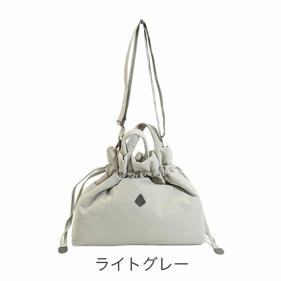 巾着としてもショルダーバッグとしても使える2WAY仕様。持ち手を出せばふんわりとした巾着に、内側にしまえばすっきりとしたショルダーに変化し、その日のスタイルや気分に合わせて使い方を選べます。ひとつで二役こなす便利さが魅力です。