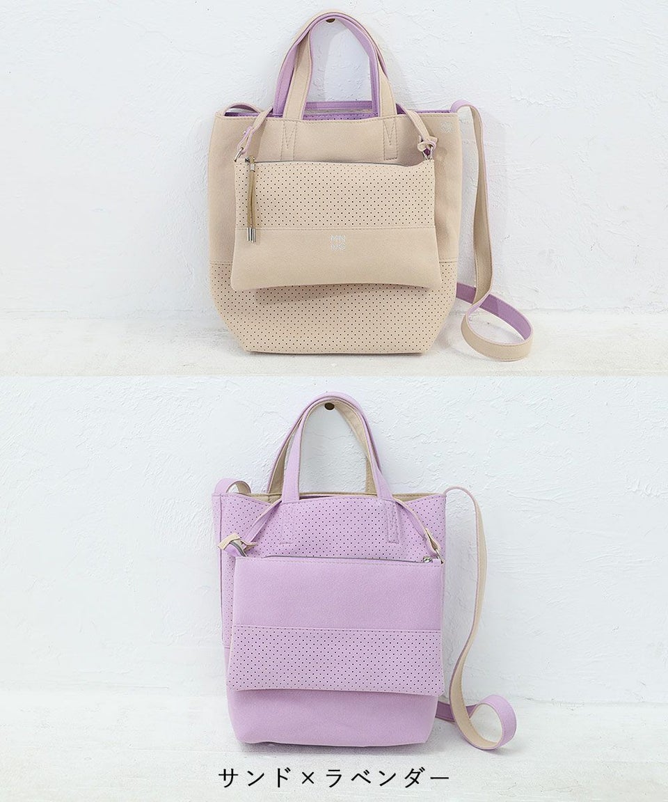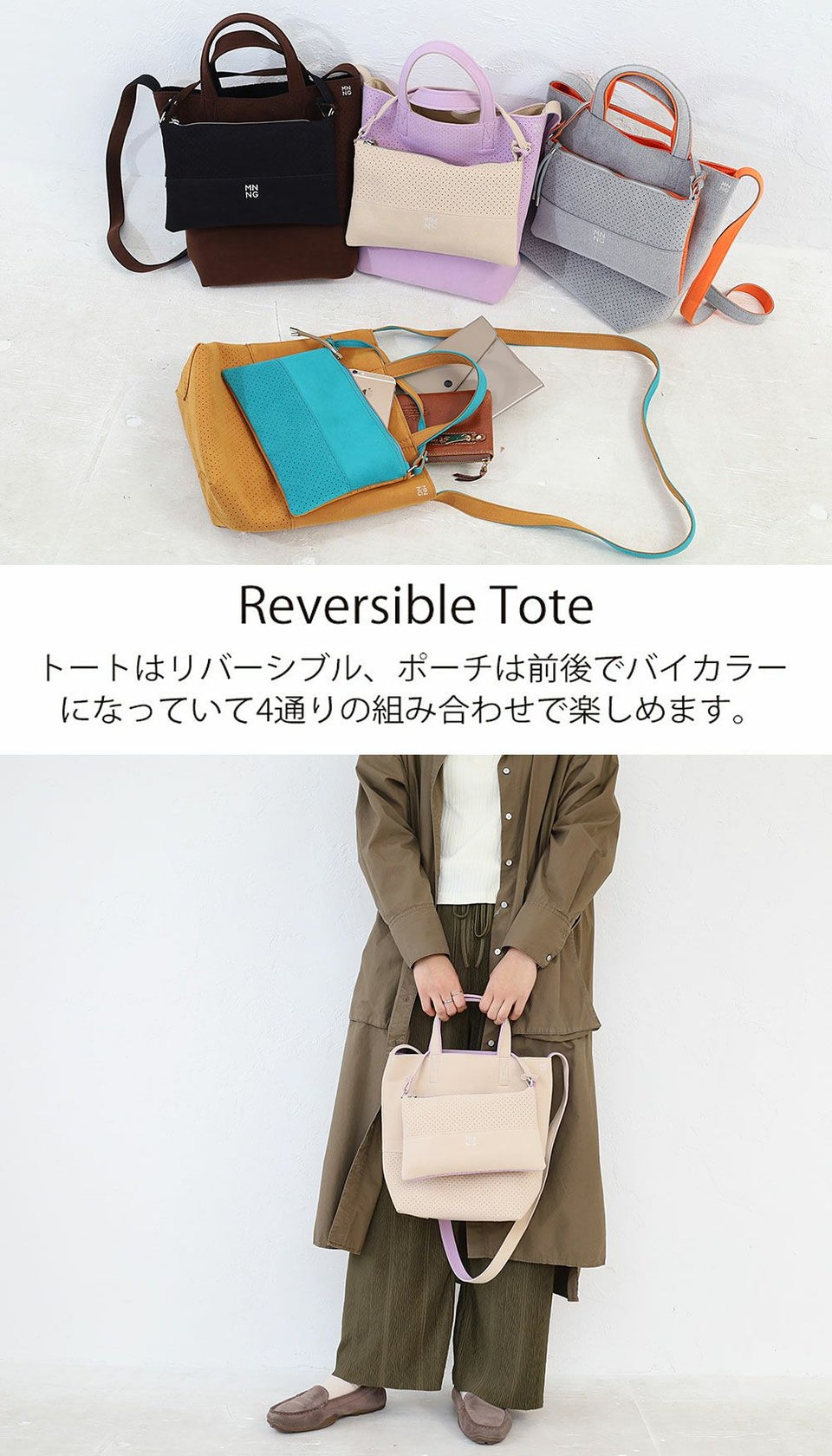 東レ Ultrasuede?使用 超軽量 洗濯機でホームクリーニング可能 2枚仕立てのバイカラーリバーシブル トート ロングウォレットが入るポーチ付き MNNG Dual Tote Mini