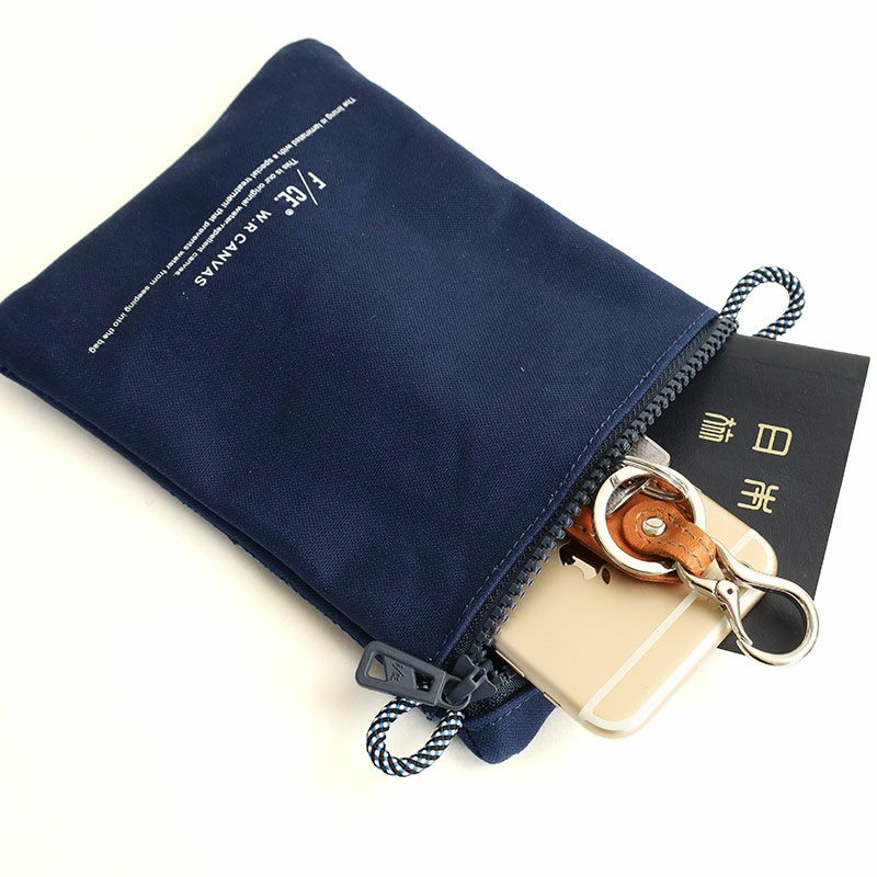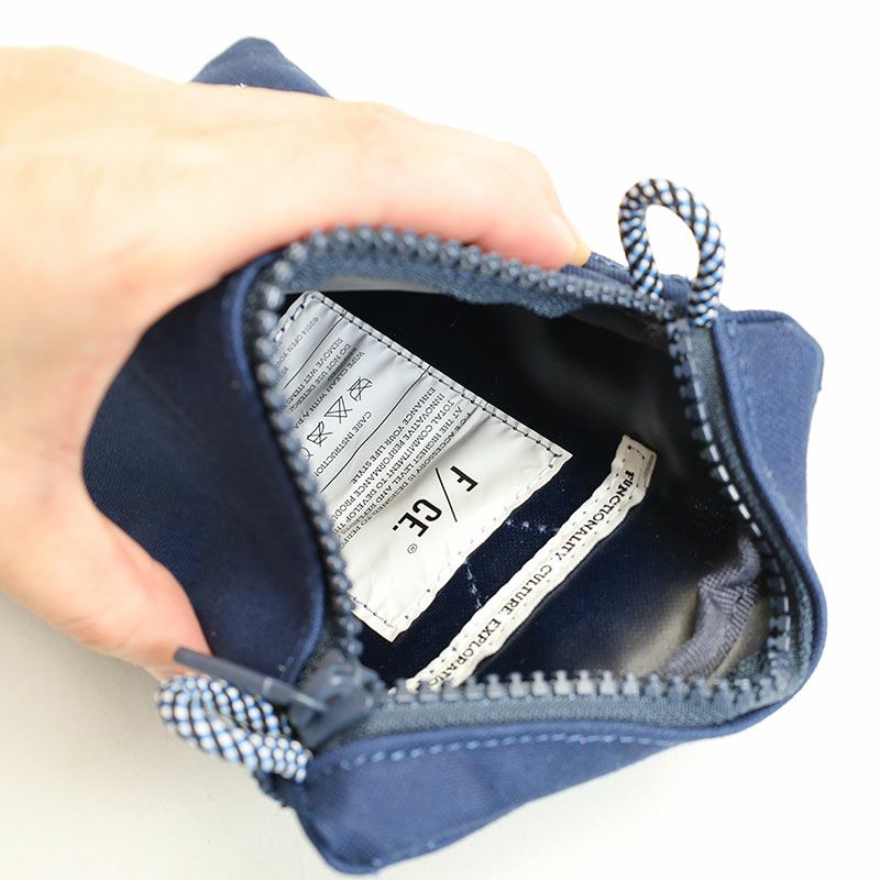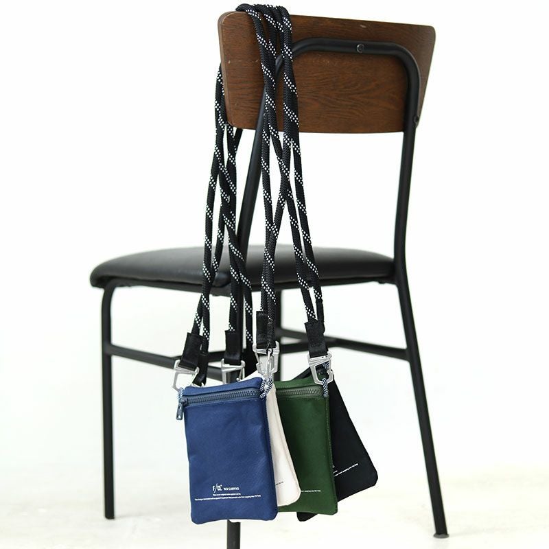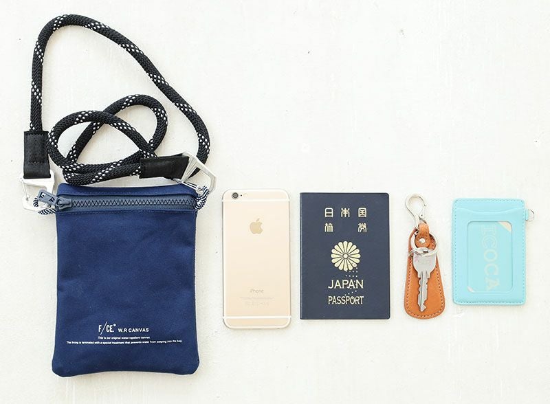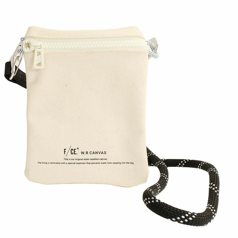 コットン100%の11号帆布の裏に、PVC加工を施し撥水機能をもたらしたF/CE.の撥水キャンバス【W.R CANVAS】を使用したスマートフォンが入る小さめのポシェット。
