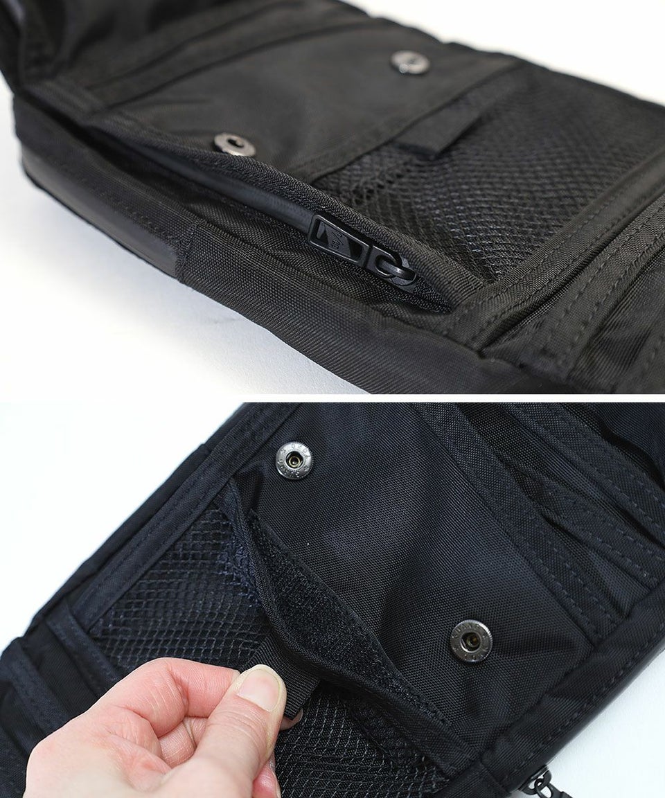 カードやパスポートなどを収納可能にしつつも、少量の持ち物も収納でき、旅先でこのバック一つで完結できる機能的なバックです。