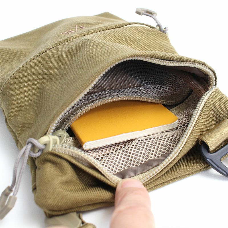 素材の500デニールのオリジナル難燃CORDURAは難燃加工を施した素材で、軽さと強度のバランスが非常に優れたバーティカルポーチ
