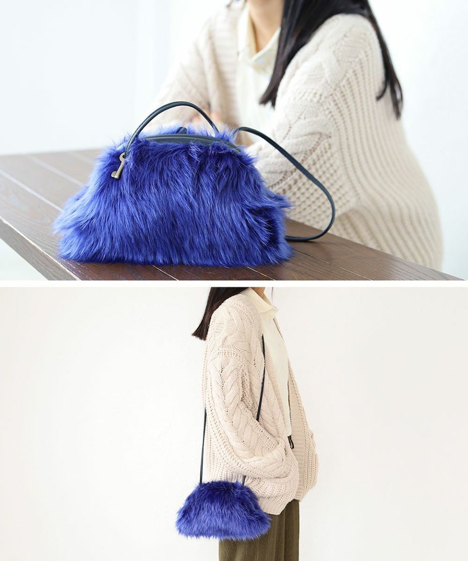ショルダーを取り外すとクラッチバッグやポーチとしても使えるエコファーがま口ポシェット mononogu Eco Fur Lip Pochette lp4-ef
