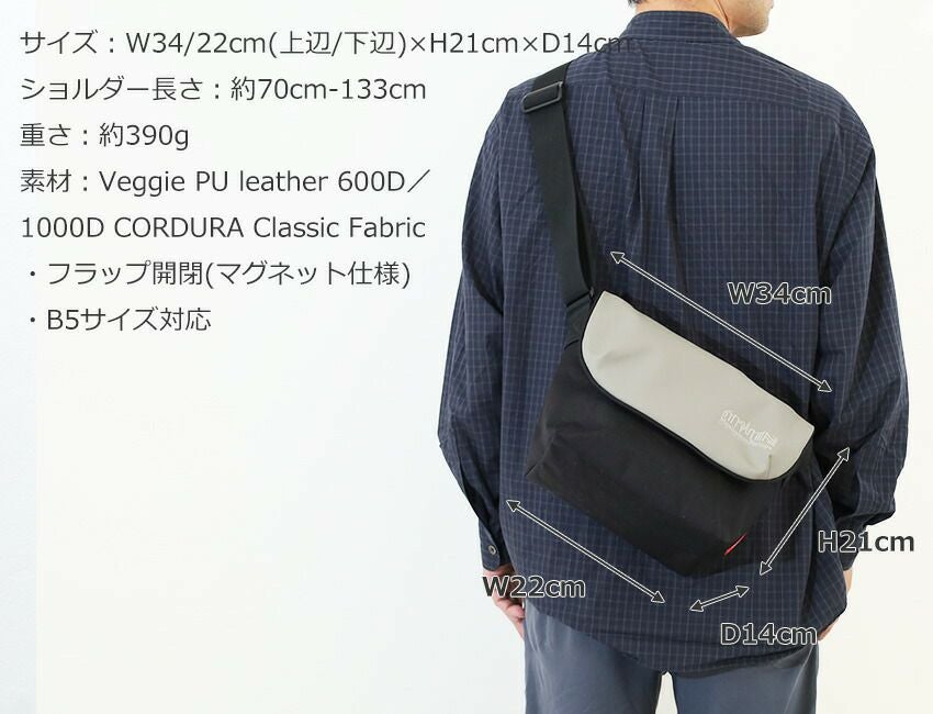 マンハッタンポーテージ ナイロンメッセンジャーバッグジュニアバックポケットW / ディバイダーマグネット ベジレザー