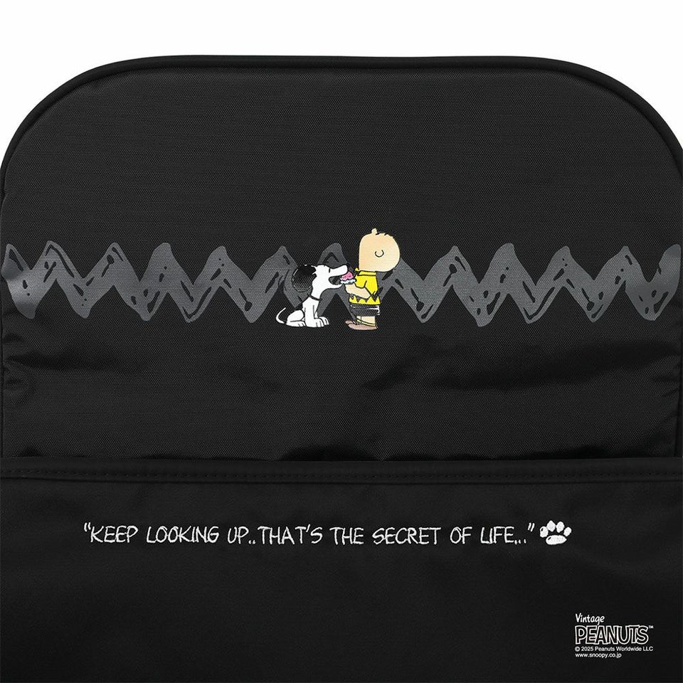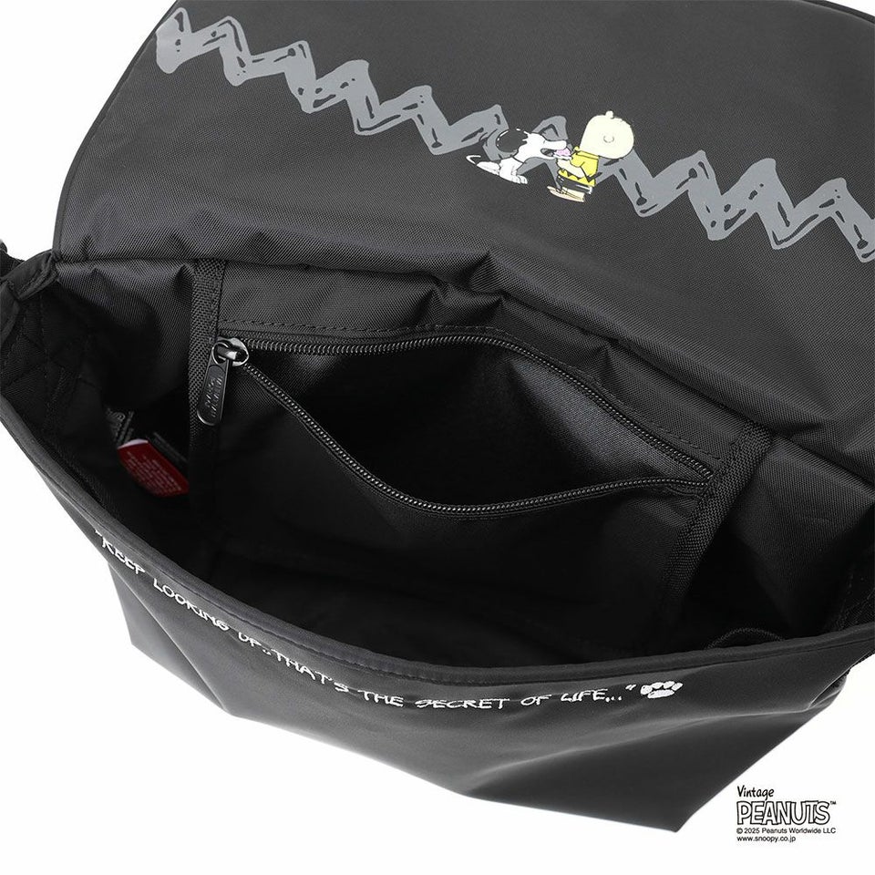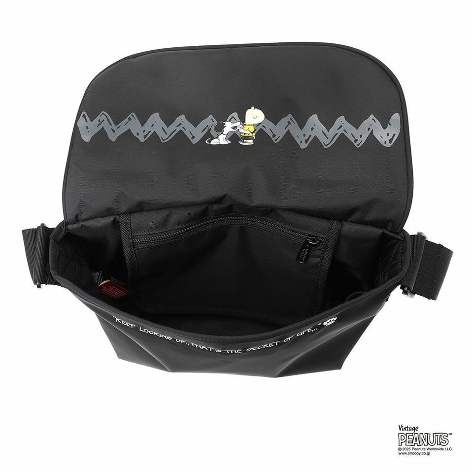 外側には刺繍、フラップ内側にはプリントを採用。バッグを開くたびにスヌーピーとチャーリー・ブラウンの物語が広がる、特別感のある仕上がりです。
