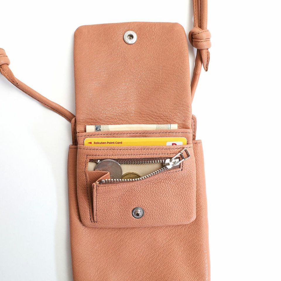 肌に吸い付くような上質な手触りの山羊革を使用したウォレットショルダー。