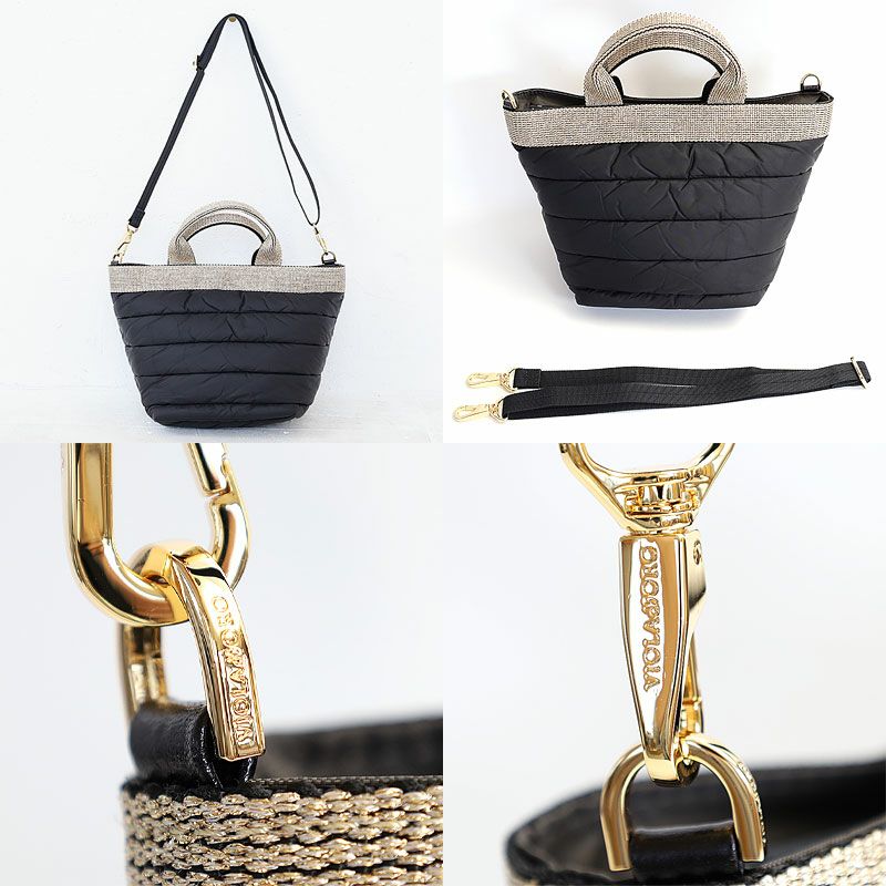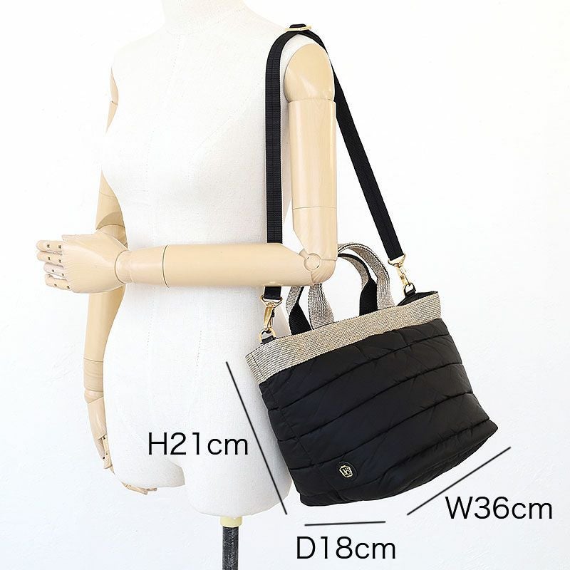 VIOLA d'ORO ヴィオラドーロ ベーシックなフォルムにゴールドのテープが印象的なナイロンの 2wayトート ボリューム感が可愛いキルティング2wayトート