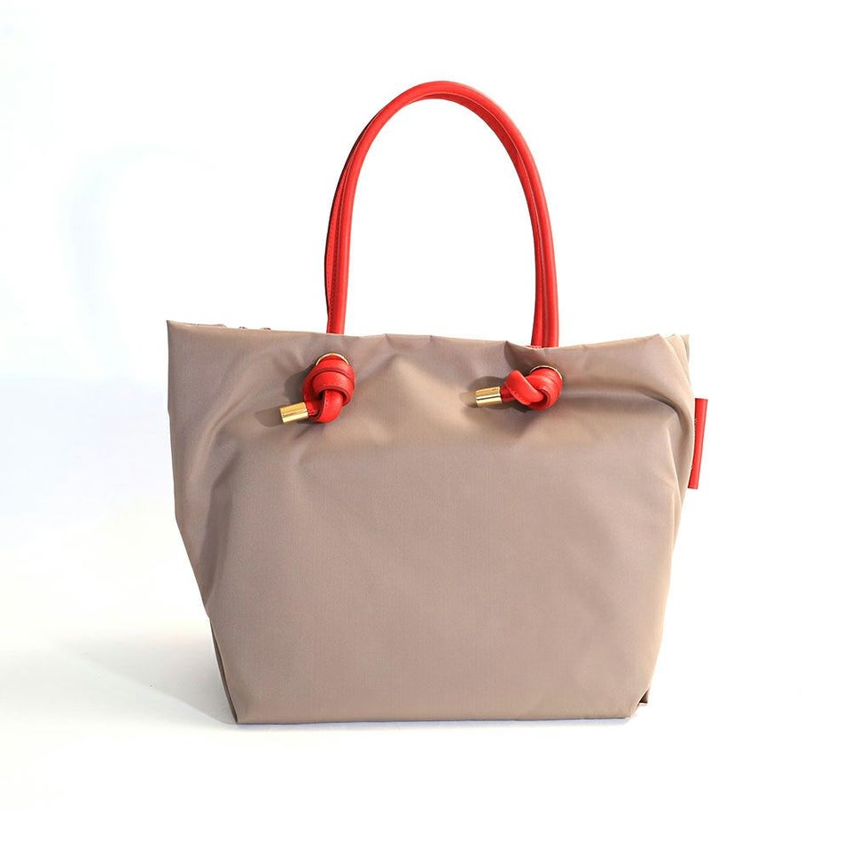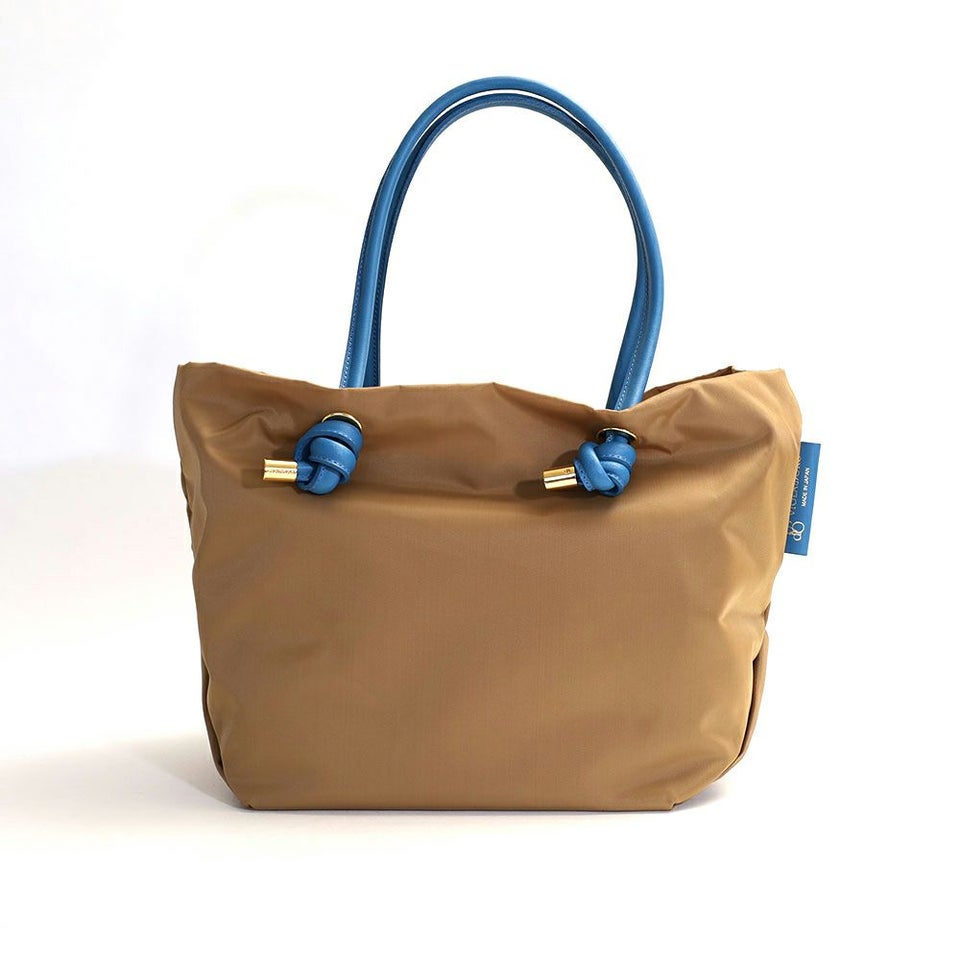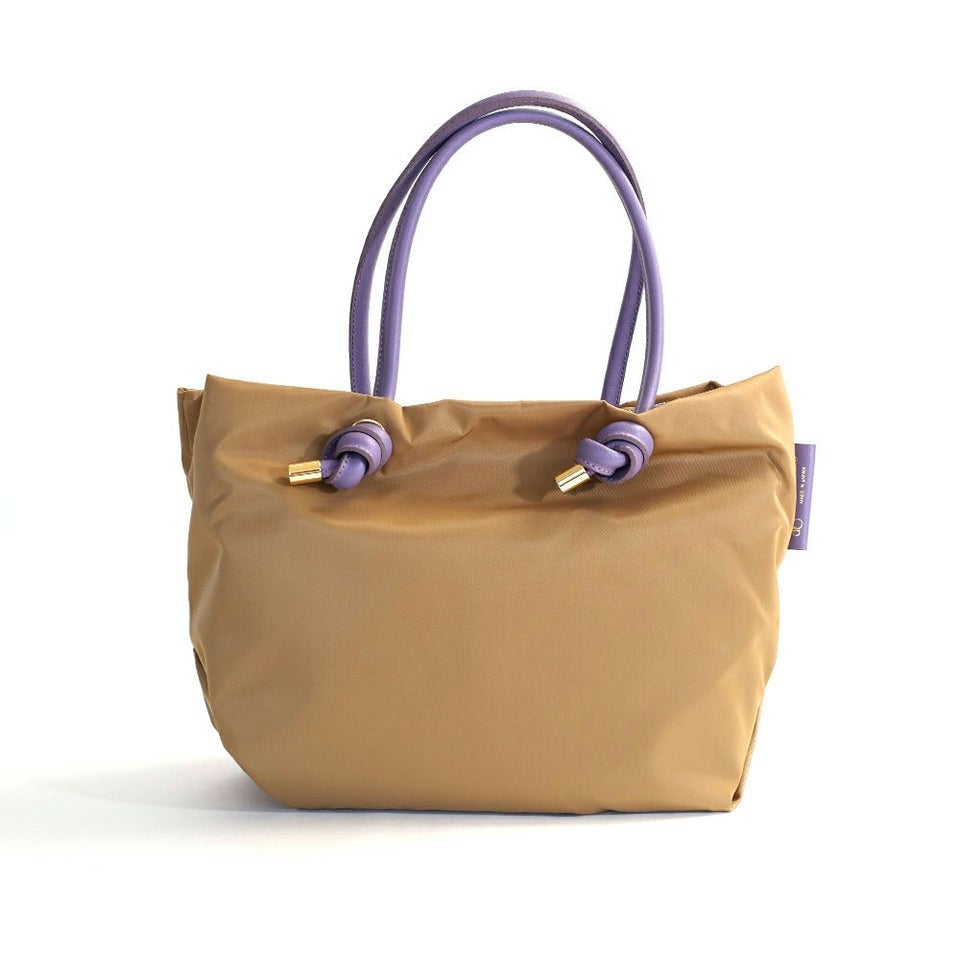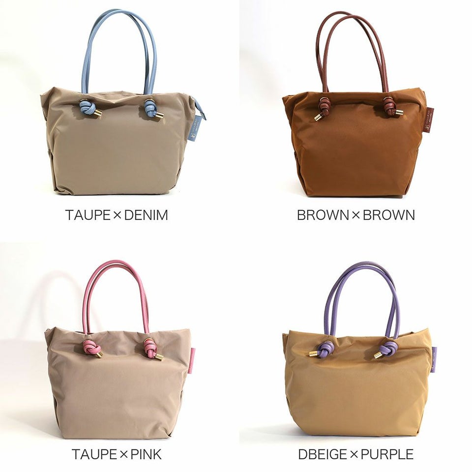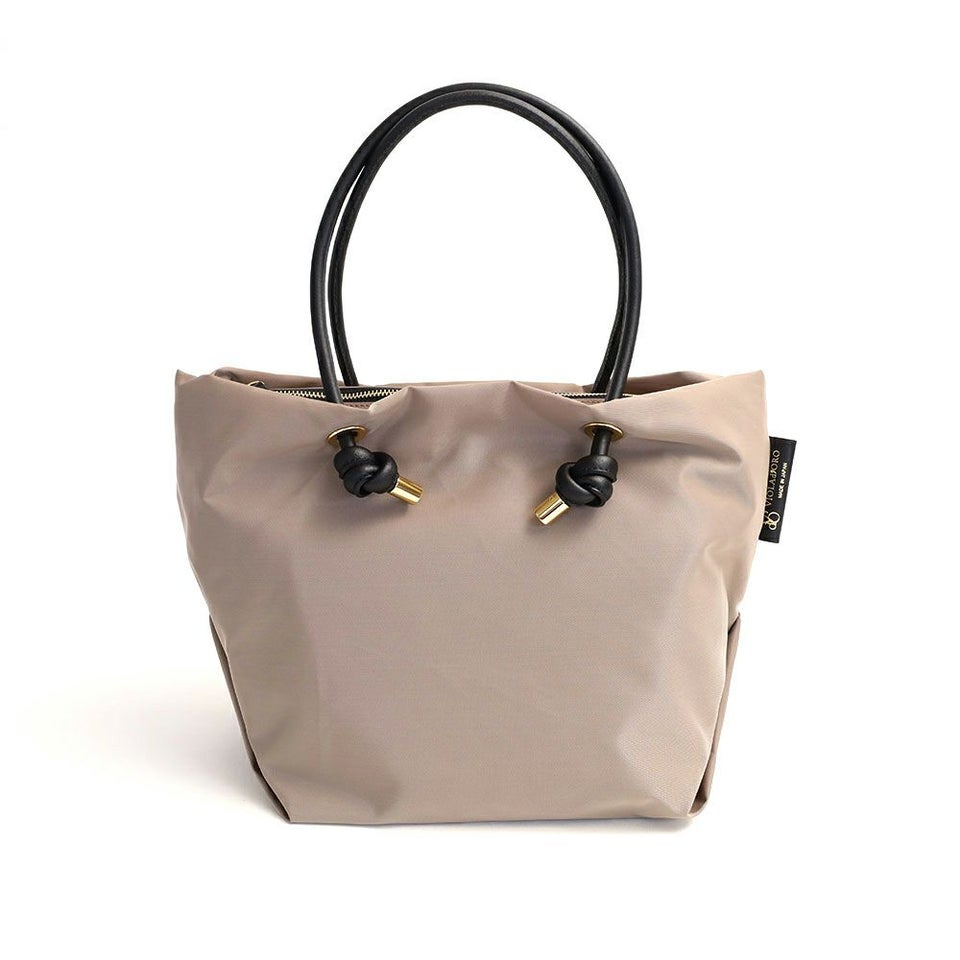 シンプルなボディに、結び目のようなノットハンドルが目を引くデザイン。上品さと遊び心を兼ね備え、オン・オフ問わず使いやすいスタイルです。
