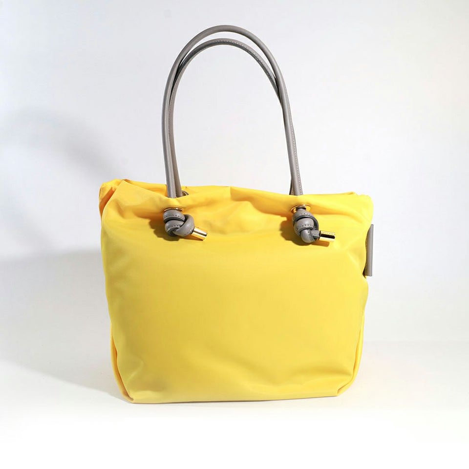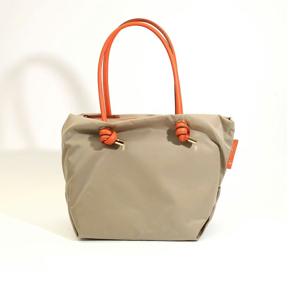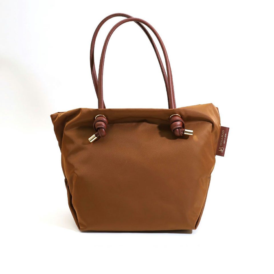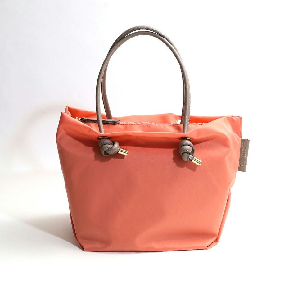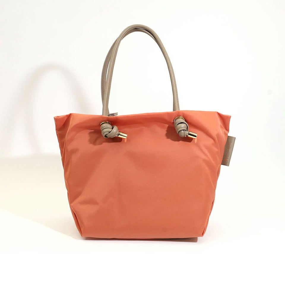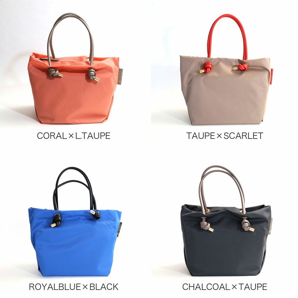 シンプルなボディに、結び目のようなノットハンドルが目を引くデザイン。上品さと遊び心を兼ね備え、オン・オフ問わず使いやすいスタイルです。