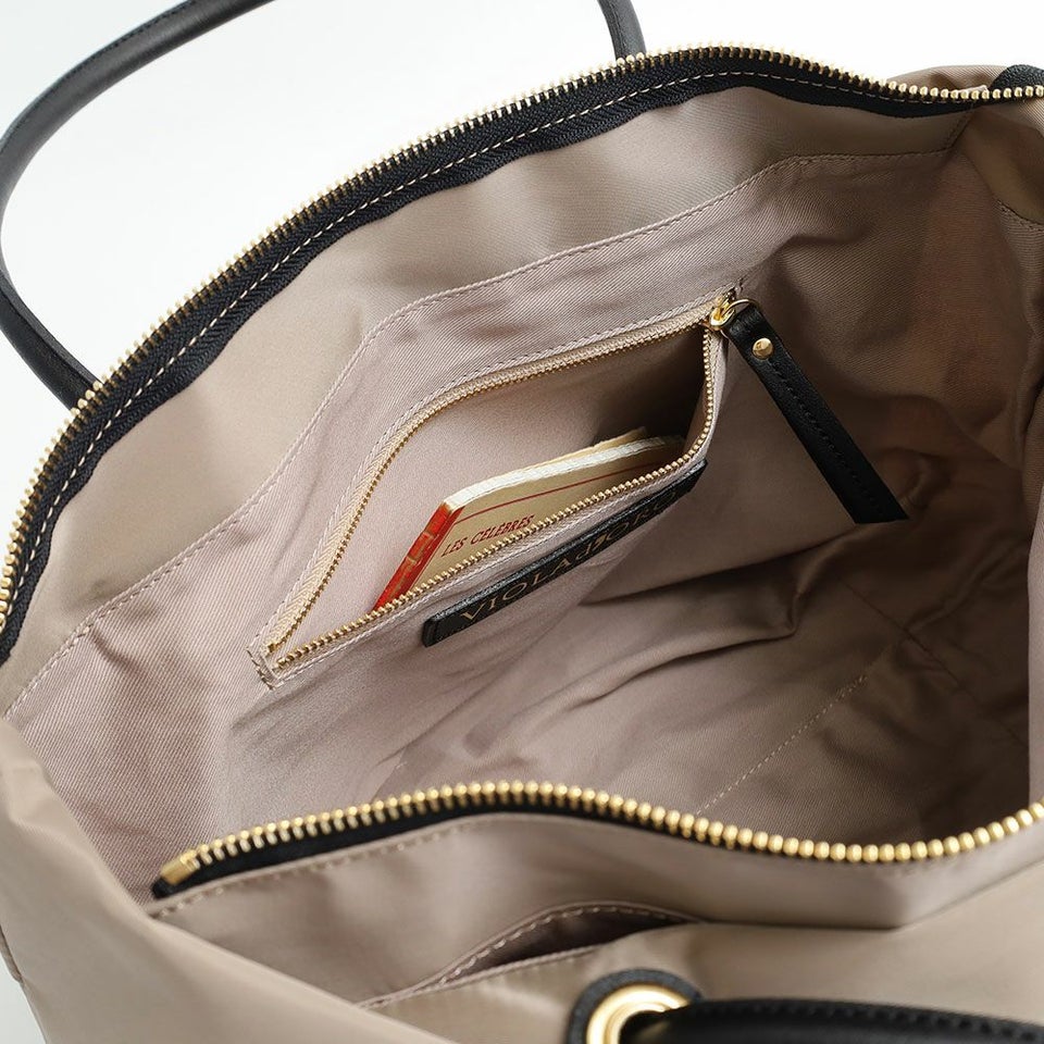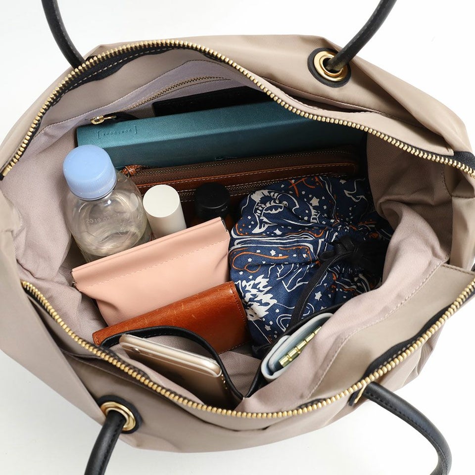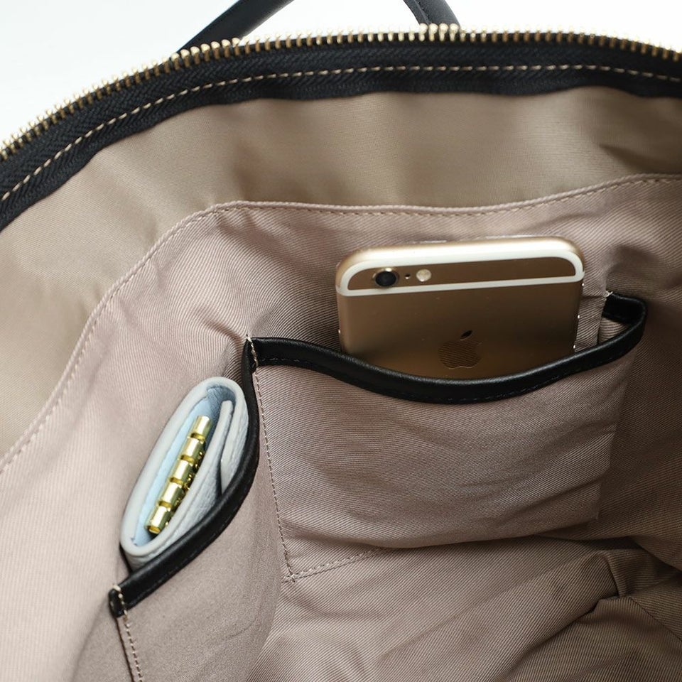 内側は3つのスペースに分かれており、ファスナーを閉めたままでもアオリポケットからスマホやパスをスムーズに出し入れ可能。荷物の整理整頓が簡単にできます。