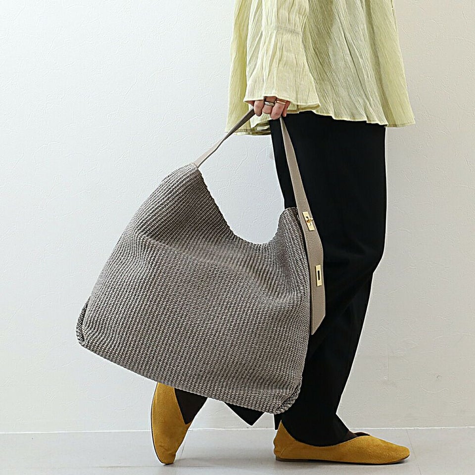 上品な風合いが魅力のラフィア調シートを使用したトートバッグ