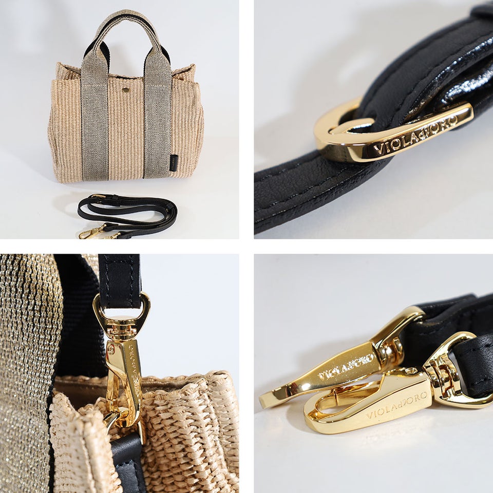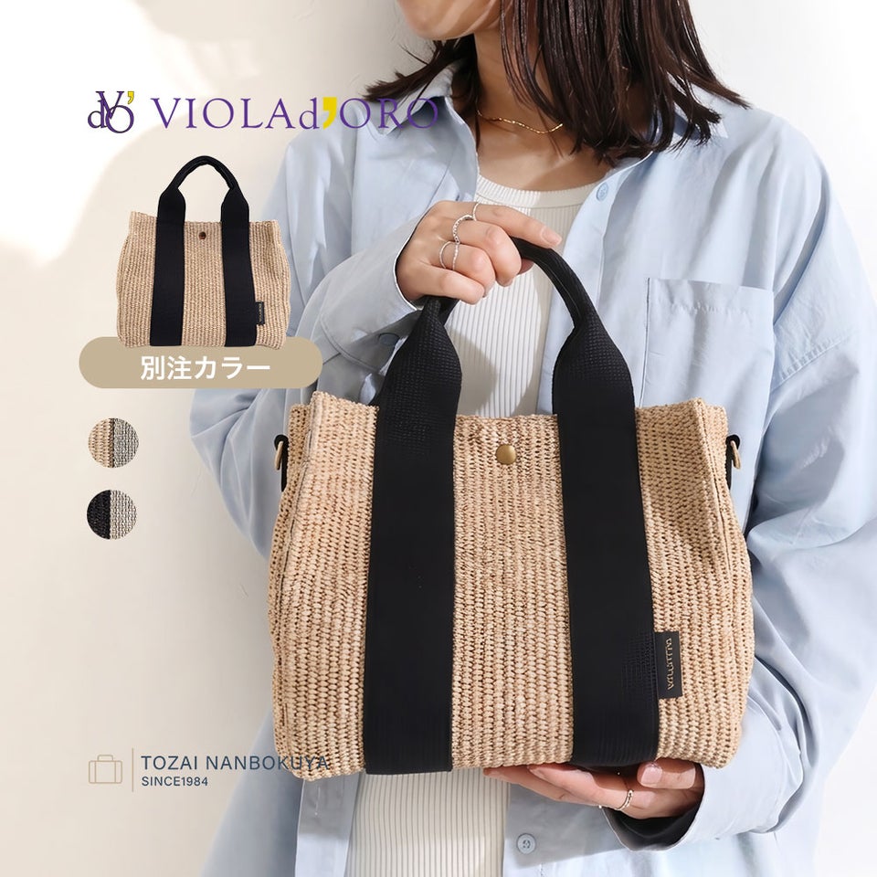 ナチュラルブラックは特別に用意された別注カラー。ナチュラルな風合いの中にブラックの落ち着きが加わり、より洗練された印象に仕上がっています。カジュアルなかごバッグでも大人らしく持てるカラーリングで、コーディネートに取り入れやすいのも魅力。ヴィオラドーロならではの上品さを感じられる特別感のあるカラーです。