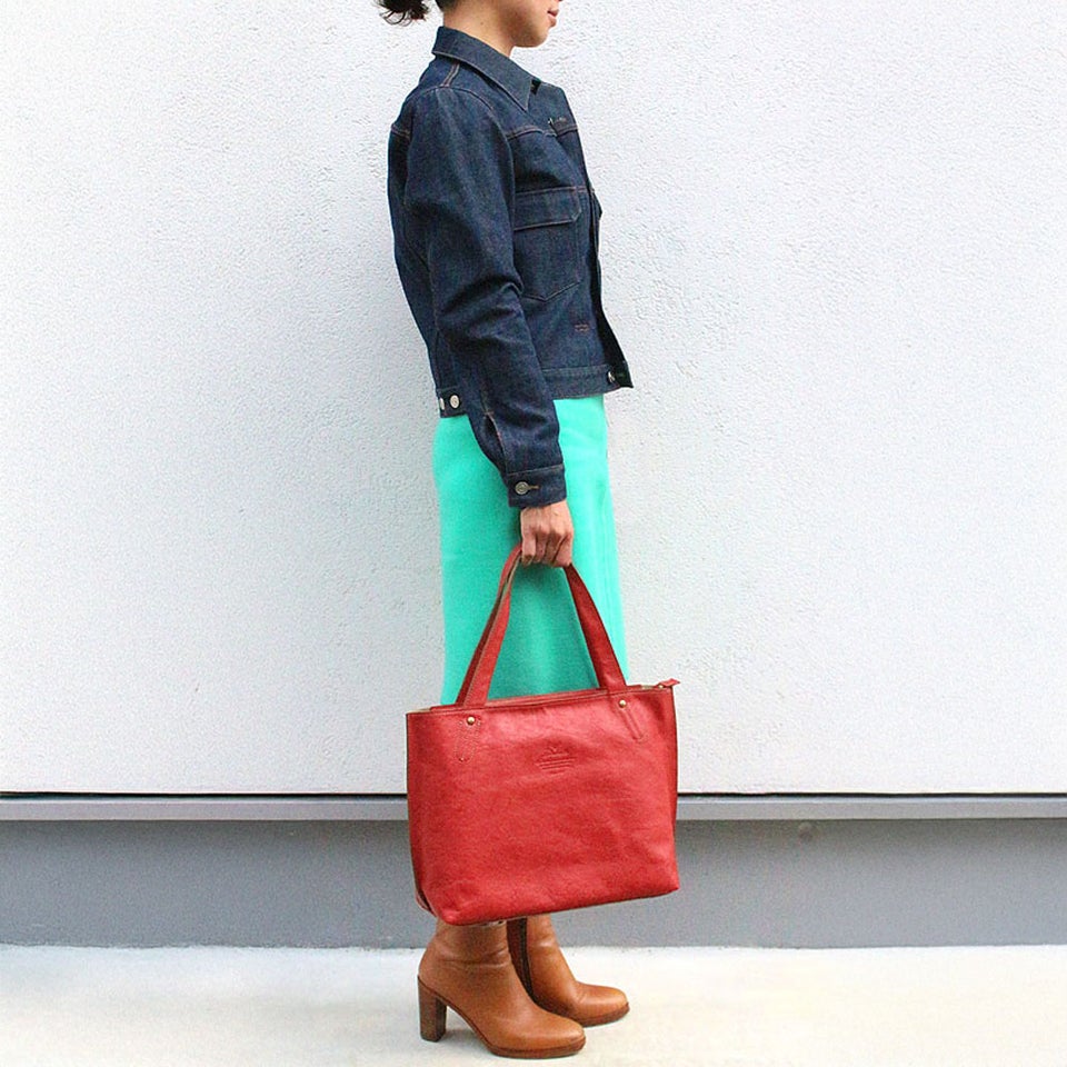 縫製やパーツ使いまで細やかに仕上げた日本製。底鋲付きで自立しやすく、置いたときの安定感も魅力です。毎日使うものだからこそ、長く信頼できる品質にこだわっています。