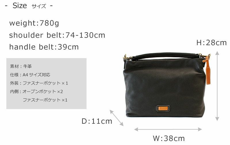 ショルダータイプとハンドルタイプの長さの異なる2本のベルトが付いており、シーンやスタイルに合わせたアレンジをお楽しみ頂けます。