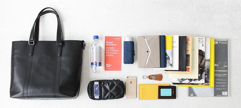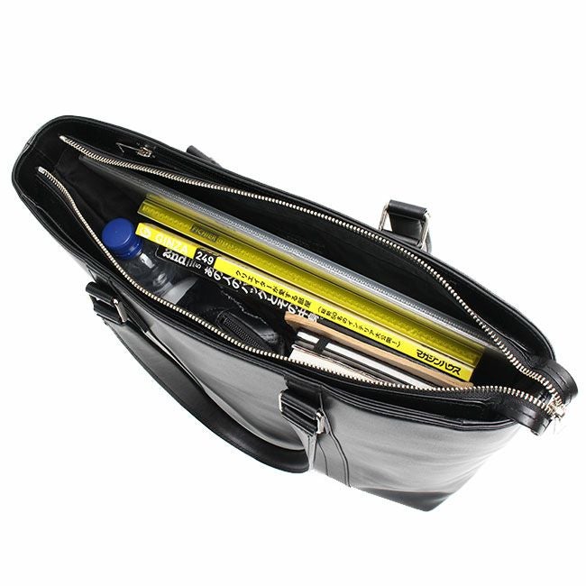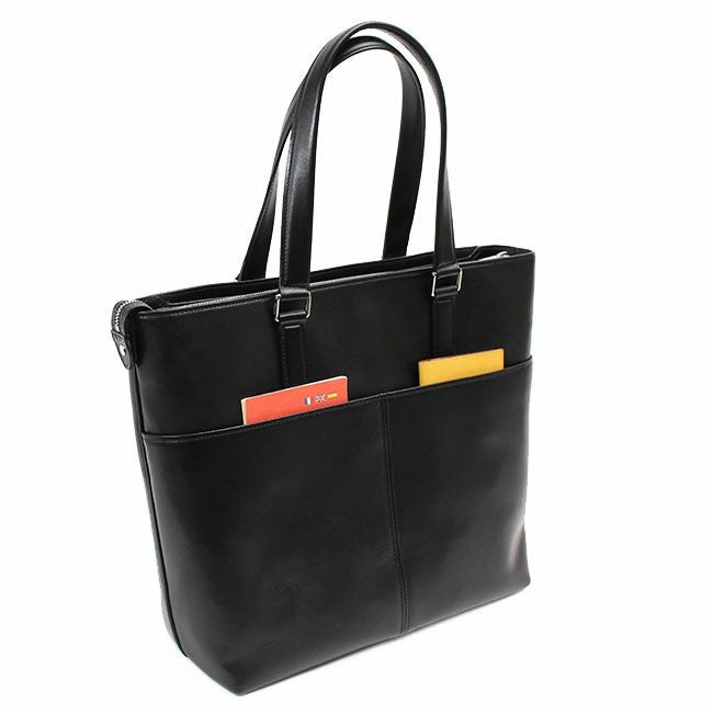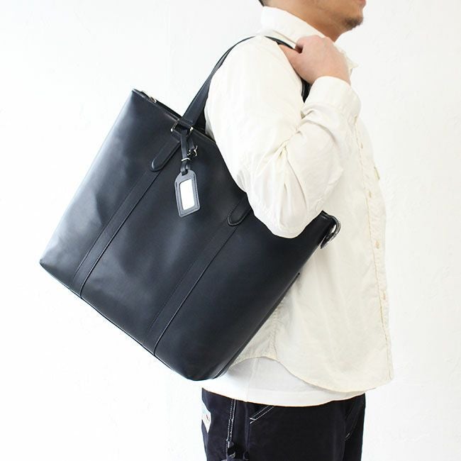 機能的なポケットを備えた、シンプルなデザインのレザービジネスシリーズ『SORT/ソート』のトートバッグ。