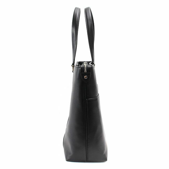 凛とした表情のシンプルレザートート。デイリーから通勤まで マルチに使える使い勝手の良いサイズ感です。
