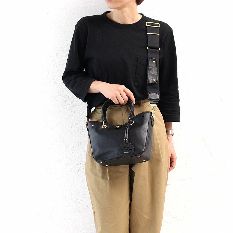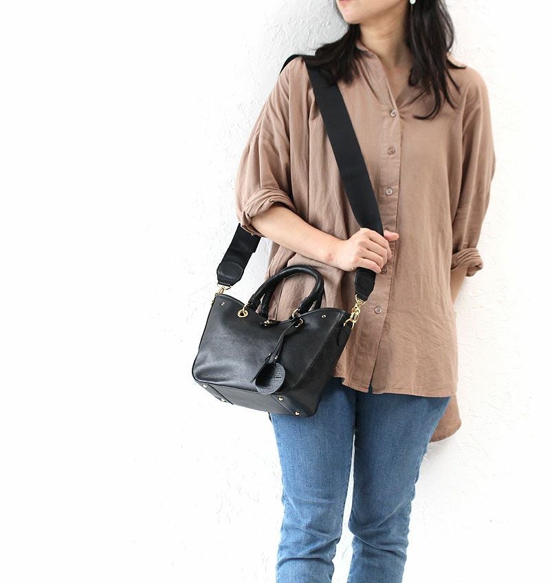 またショルダーストラップのナスカンなどの金具使いやカバンの底部分に施したステッチワークなど、 シンプルなデザインながらも、存在感のある佇まいも魅力的です。