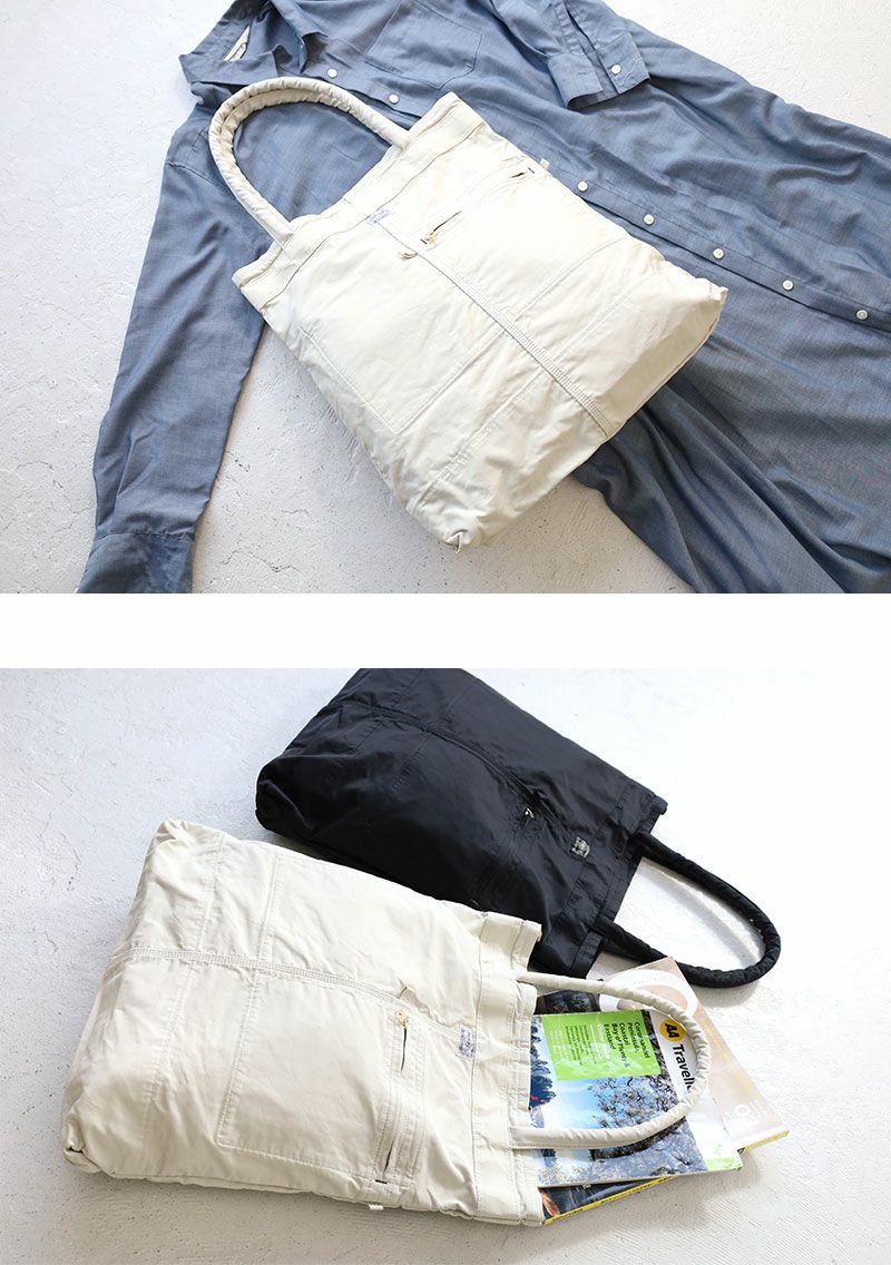 1940-50年代頃のアメリカのツールバッグやワークエプロンをモチーフに、素材をナイロンコットンツイル素材にすることで軽量に仕上げ、ワークアイテムが持っている印象と素材にギャップを持たせています。