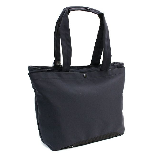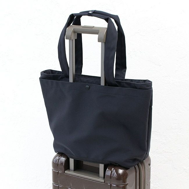 トートバッグ(L)は、肩にもかけられるハンドルの長さで、A4サイズに対応しています。背面のポケットはファスナーを開くとトロリーバー通しになる仕様で、出張や旅行などの際にも便利です。