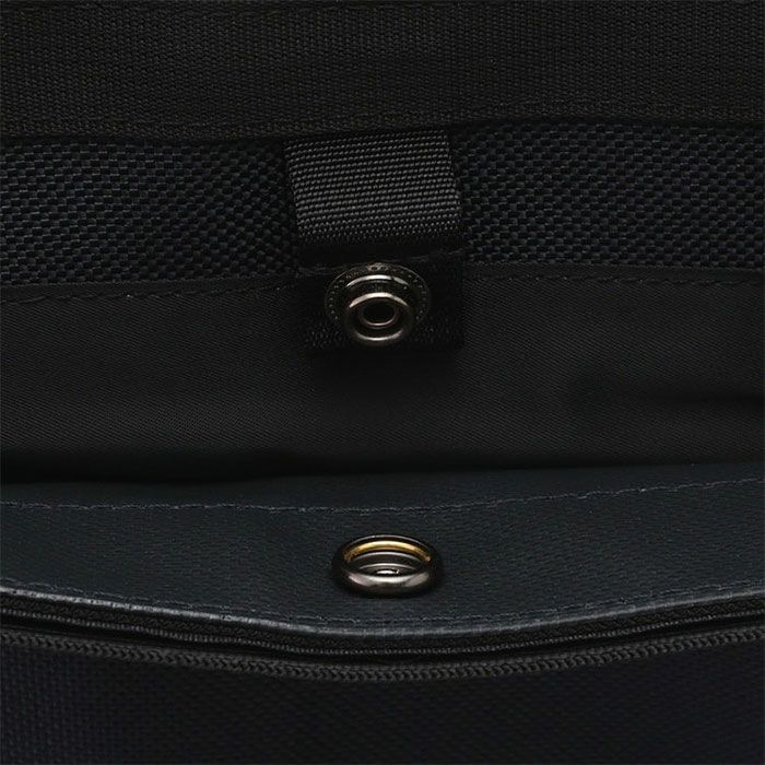 背面のメンファスナーを使用すれば、ハードケースと併せ持ちした際にしっかりと固定することが可能。