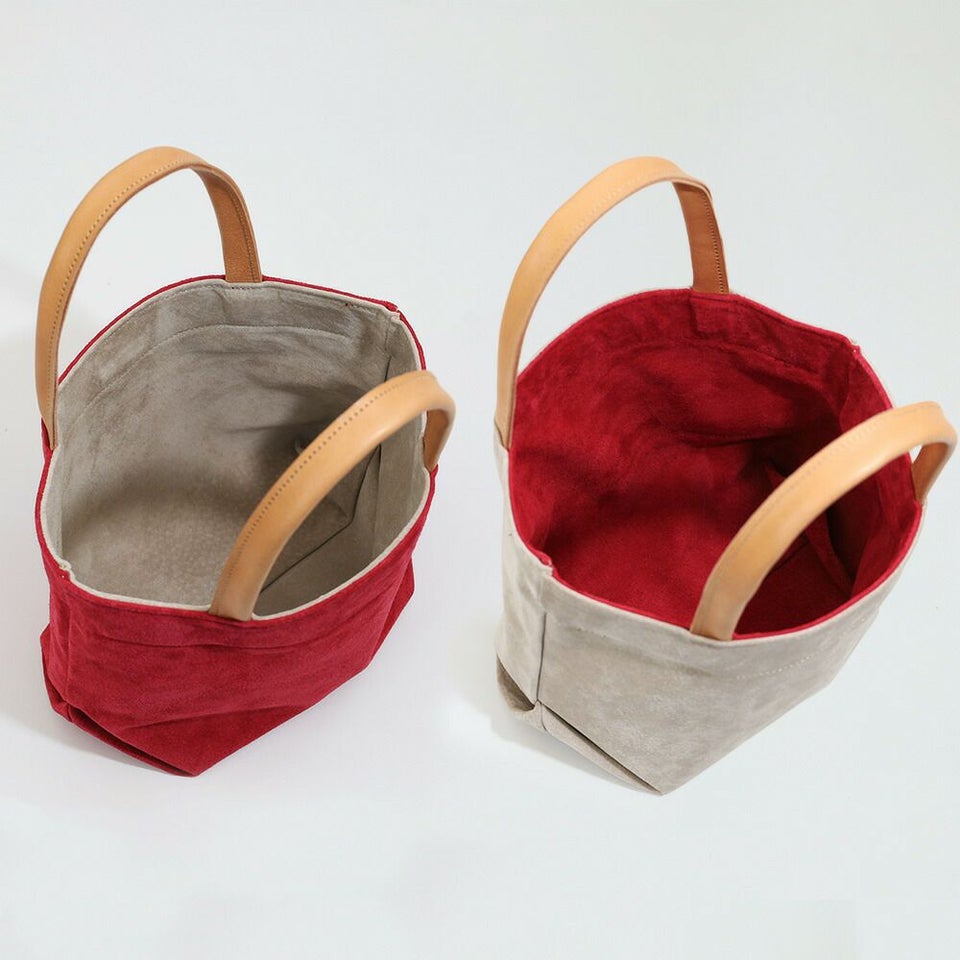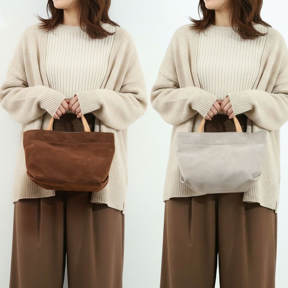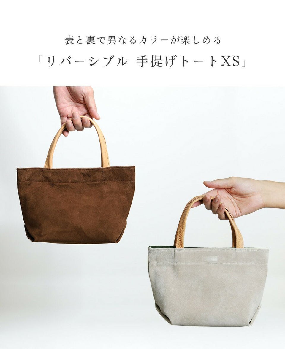 表裏で異なるカラーを楽しめる、リバーシブル仕様のスエードレザートート。