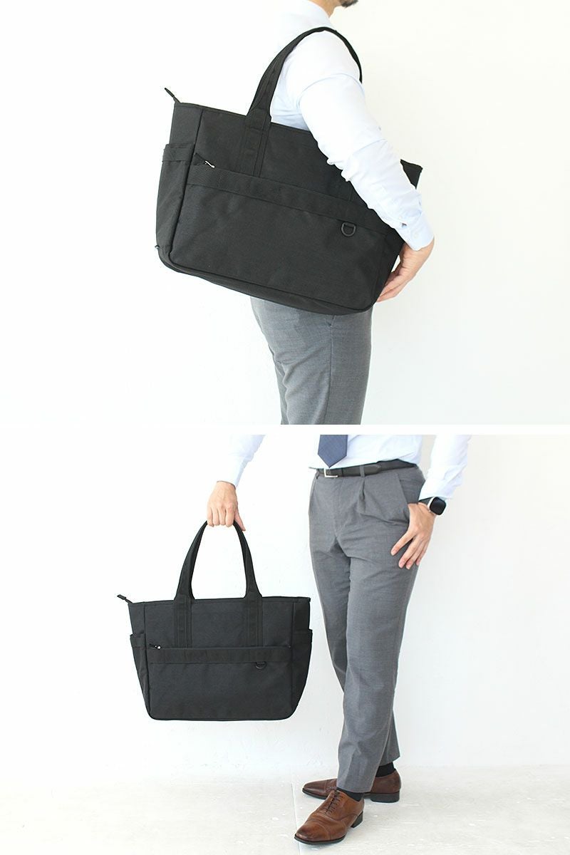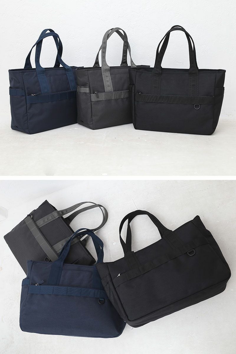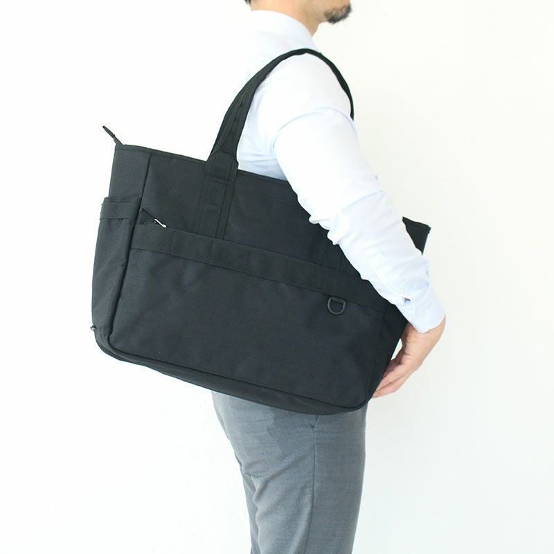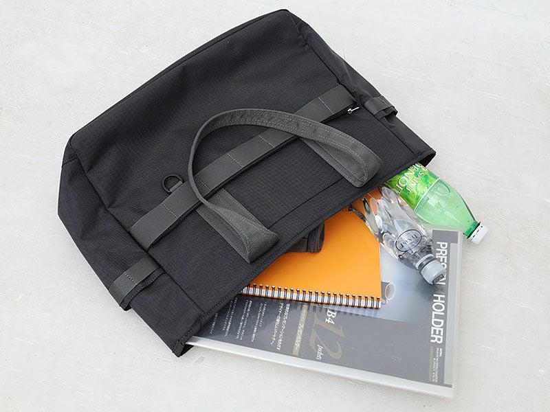 カジュアルな通勤スタイルに対応した、アウトドアテイストのトートバッグ。