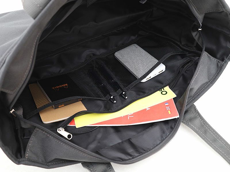 内装にはメッシュポケットとファスナーポケットがあります。