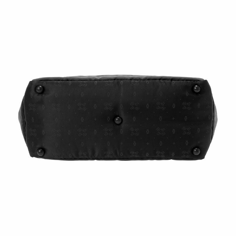 高密度に織り上げた光沢のあるナイロン生地に、モノグラム柄をジャカードで表現しました。綿ボンディング加工を施したこの生地は、軽さとしなやかさを持ちあわせているのが特徴です。
