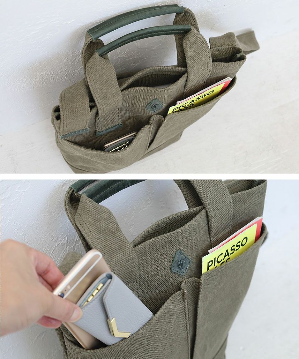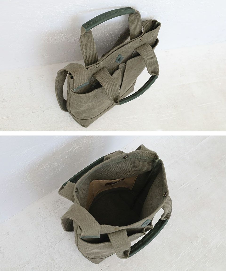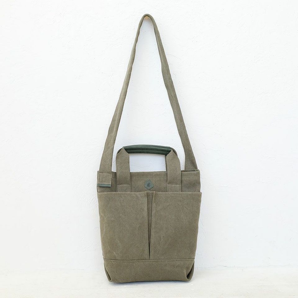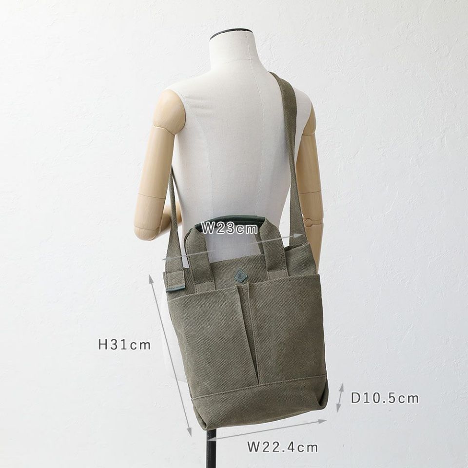 コットンジュートを一度洗いにかけたウォッシュドコットンジュートで仕立てた2WAYバッグ。
