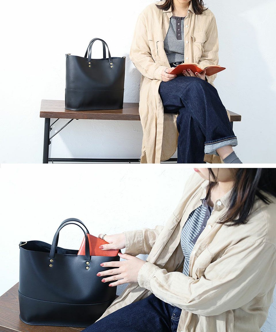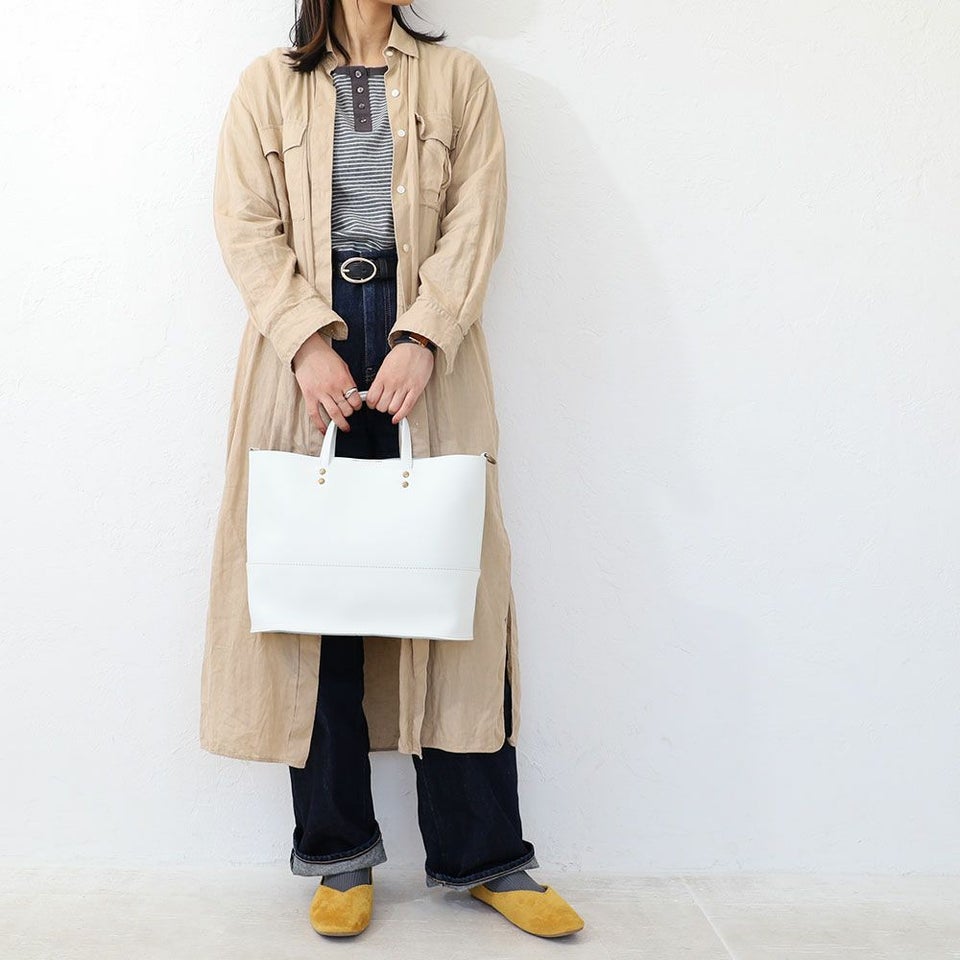 本革仕様でありながらとても軽く、見た目もライトな気軽に使えるトートバッグ。