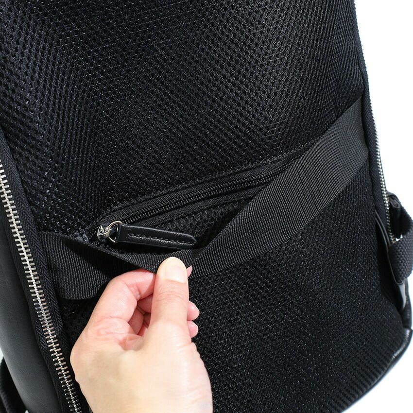 メッシュ素材が使用された背面にはキャリーオンベルトが設置されていて、出張が多い方にもおススメ。