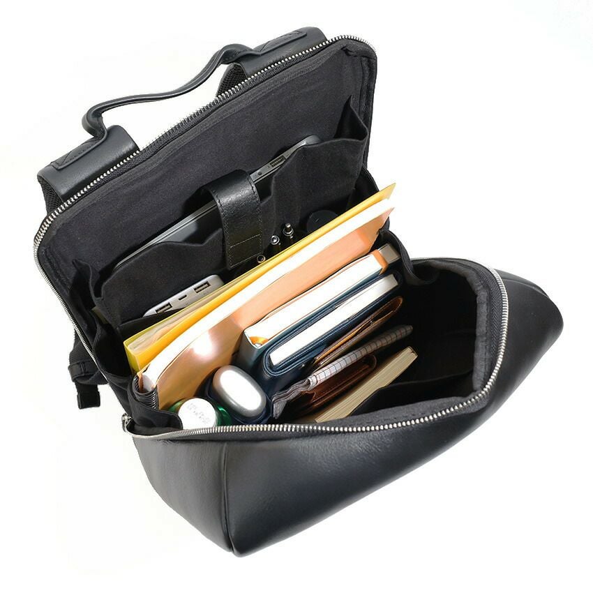 “ビジネスシーンで活躍する機能を備えたオールレザーリュック”