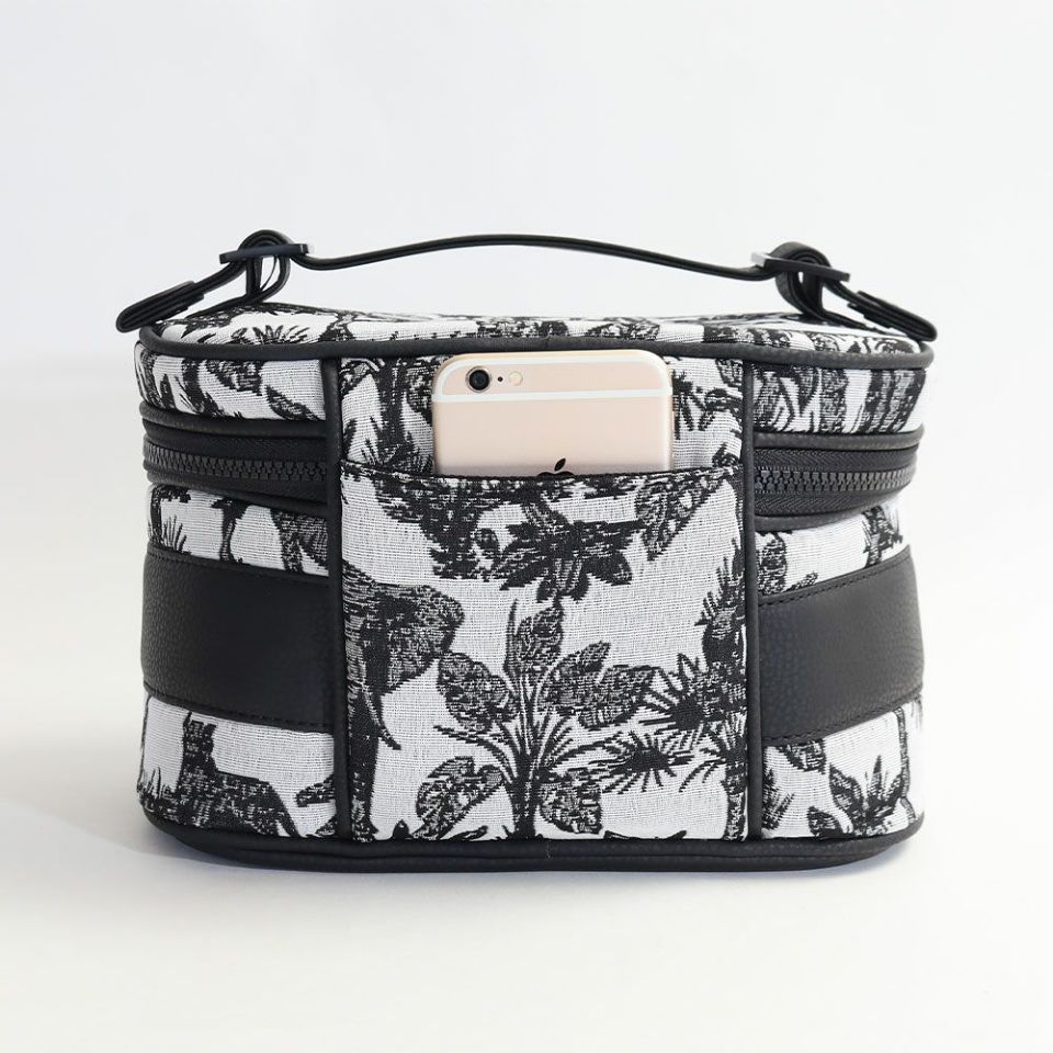 キャディバッグと同じジャガード生地のラウンド型カートバッグ。 横向きペットボトルがすっぽり入るサイズになっており、内側・外側ともにポケットが充実しております。 カートバッグとしても、旅先でのディナーにも活躍する、 ラグジュアリー感漂うデザインに仕上がっております。