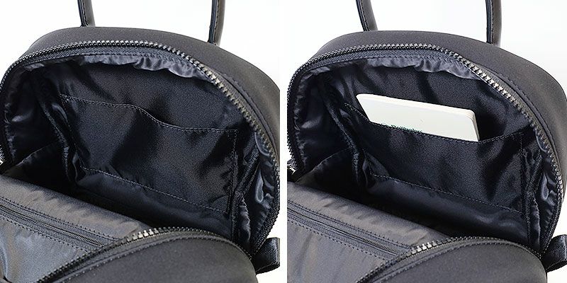 反対側にはオープンポケットもあり、小物の収納に便利です。
