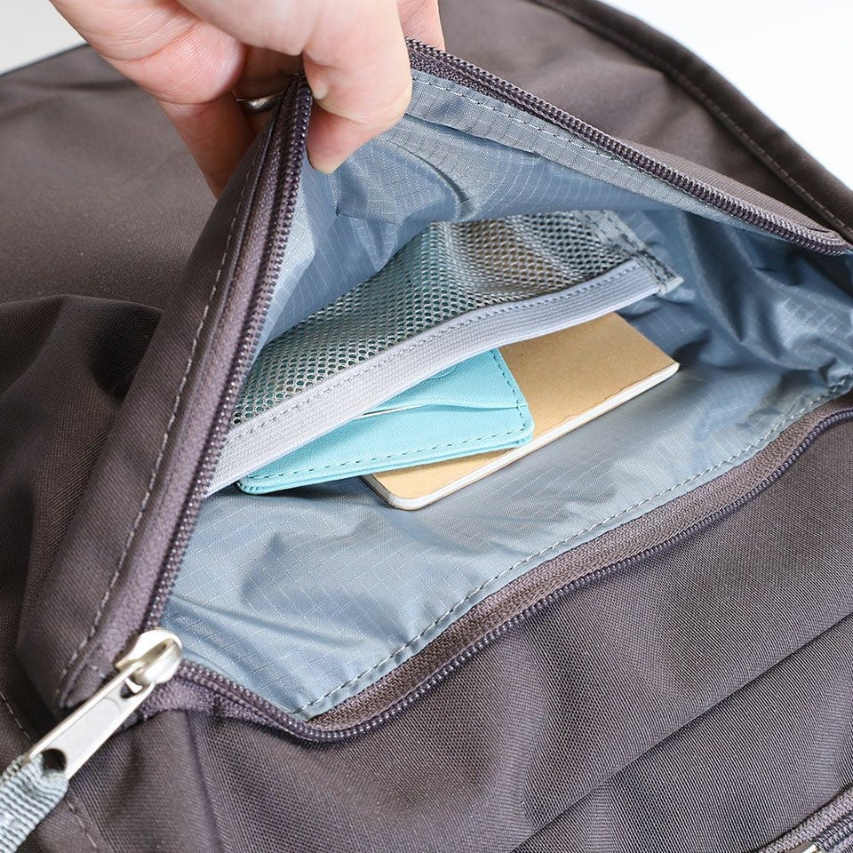 本体には高い撥水性を備えた素材を使用。突然の雨でも中身が濡れにくく、大切な書類やガジェットも安心して持ち運べます。