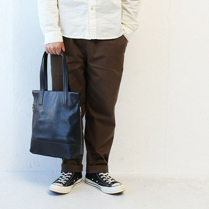 究極なまでにシンプルな縦長トートバッグは“抜け感”がキーワードになっています。