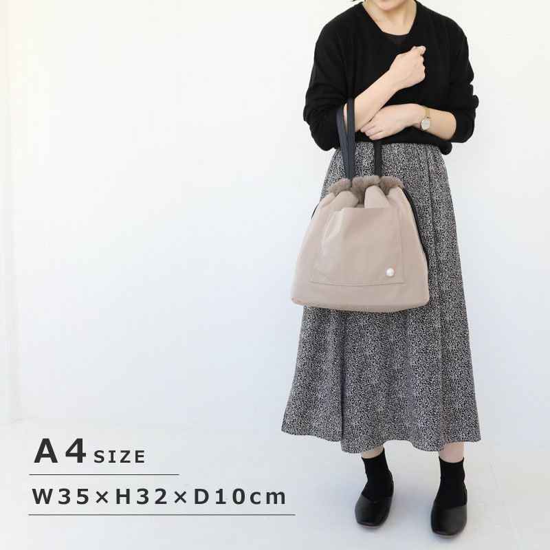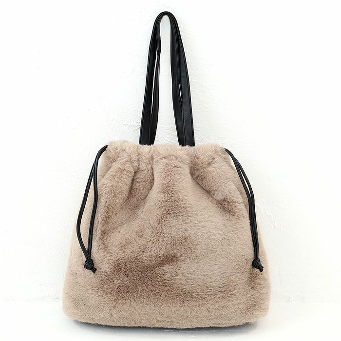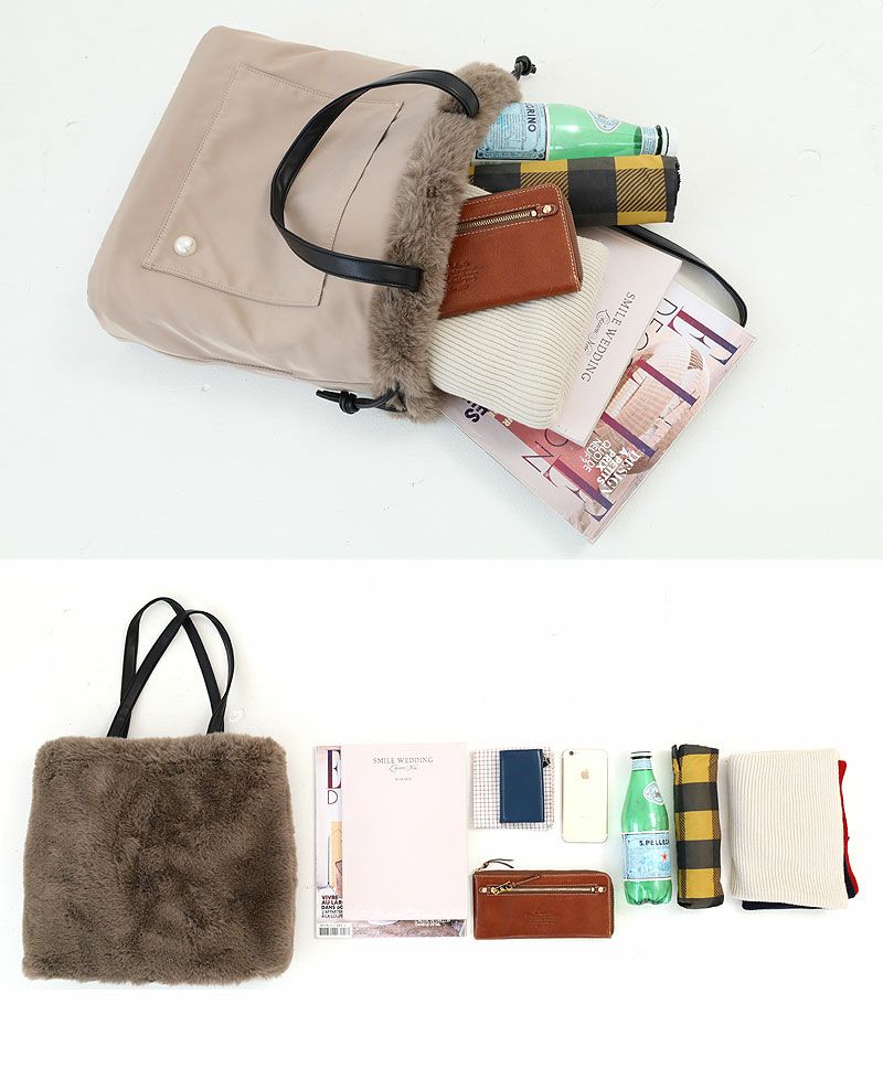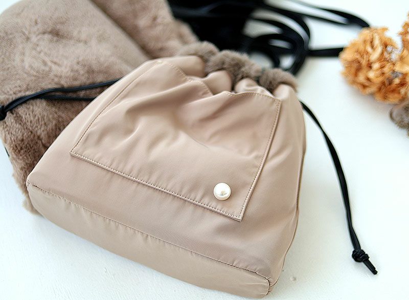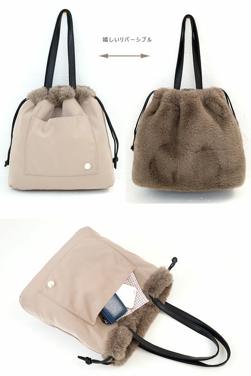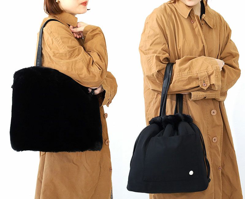 かわいいファー巾着トートにもなり、様々なフォルムになるので 気分によって色々と変えられるのが嬉しいところ。
