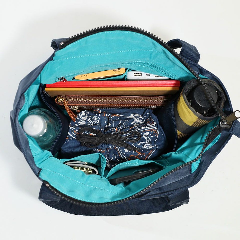 内側の両サイドには、ペットボトルや折りたたみ傘がすっぽり収まる専用ポケットを完備。縦にスッキリ収納できるからバッグの中がごちゃつかず、整理整頓がしやすいのも嬉しいポイント。