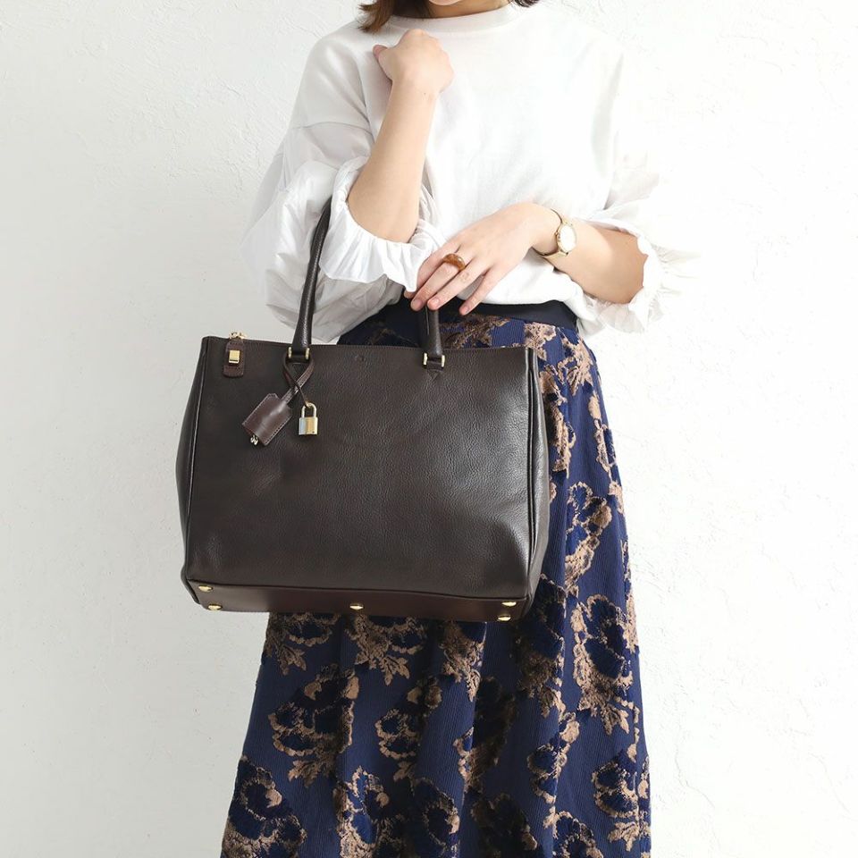鍵付きでロックが可能 A4サイズが収納可能なヤギ革トートバッグ A4対応 mononogu Bridge Tote br5-gs