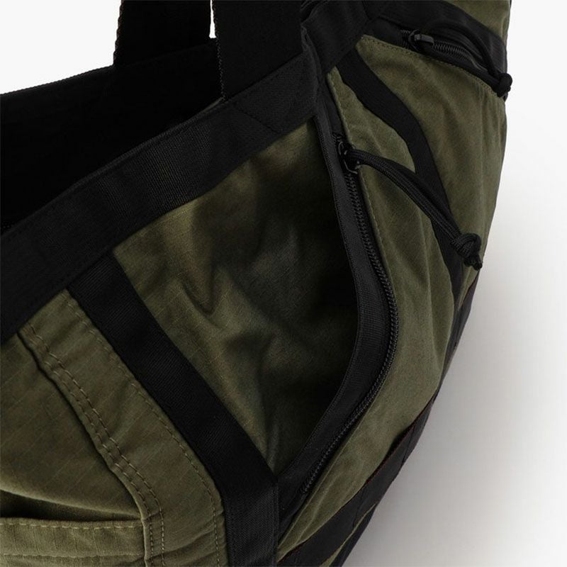 シンプルなデザインながらも、ナイロンテープと生地との配色がBRIEFINGらしいミリタリズムを感じる佇まいに。