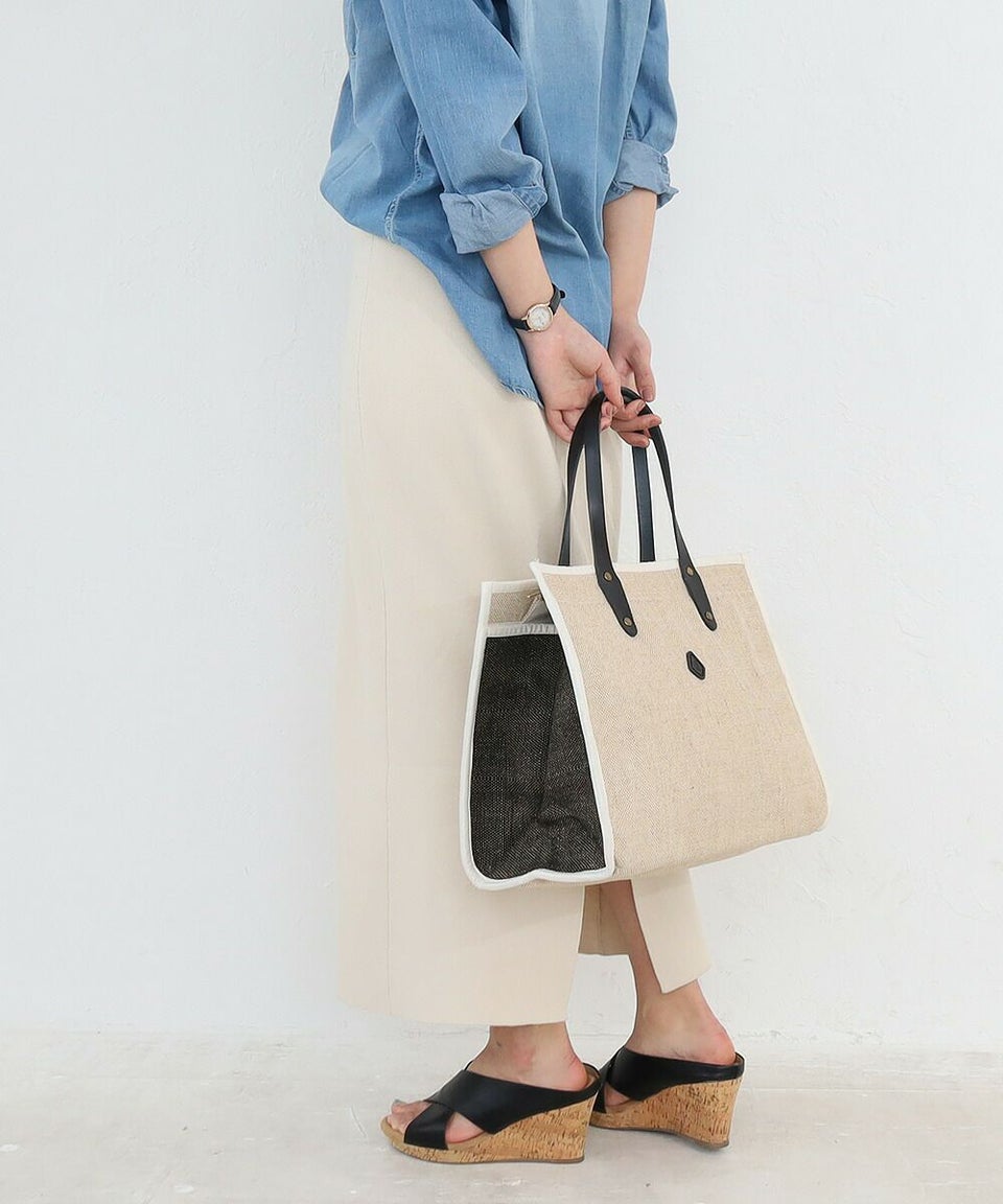 コットンジュートで仕立てたトートバッグ。