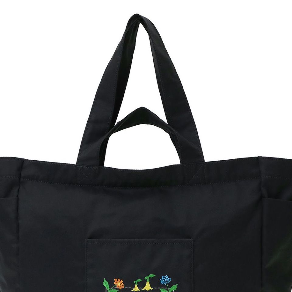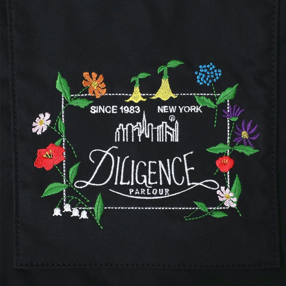 ブランドロゴを繊細な刺繍で表現し、草花が絡み合うように描かれた印象的なアートワーク。フラワーショップならではの生命力と創造性が感じられ、持つだけでスタイルに柔らかな個性を添えてくれます。