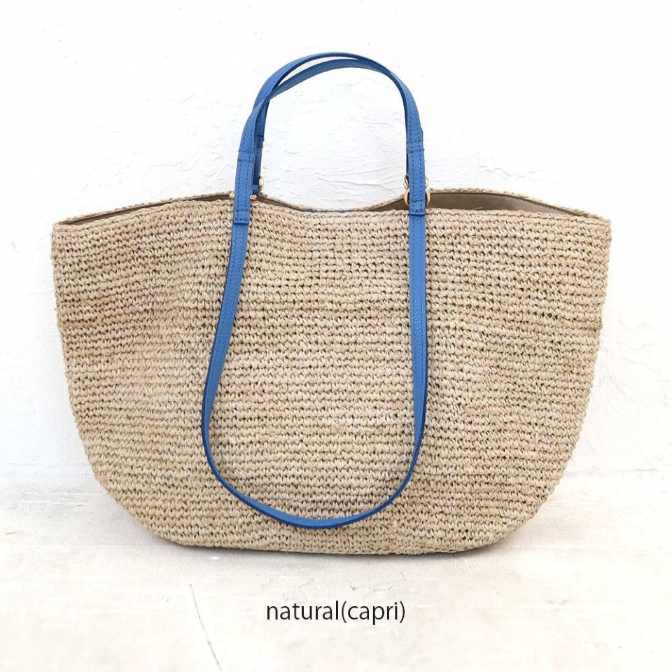 シンプルなラフィアのボディにハンドルでアクセントをつけたカゴバッグ。