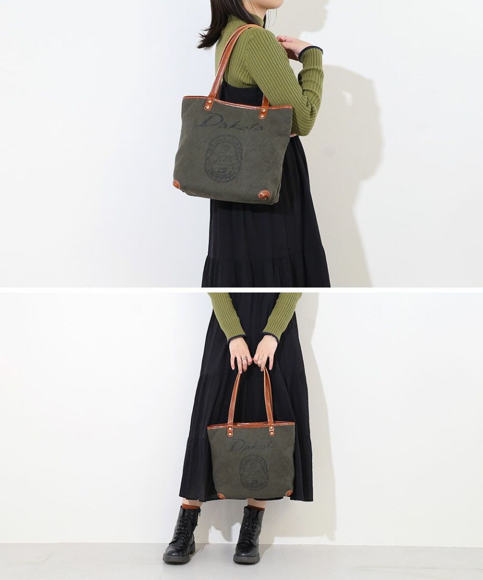 Dakotaロゴと生地の風合いがアンティークな装いを演出してくれるデイリーバッグシリーズ