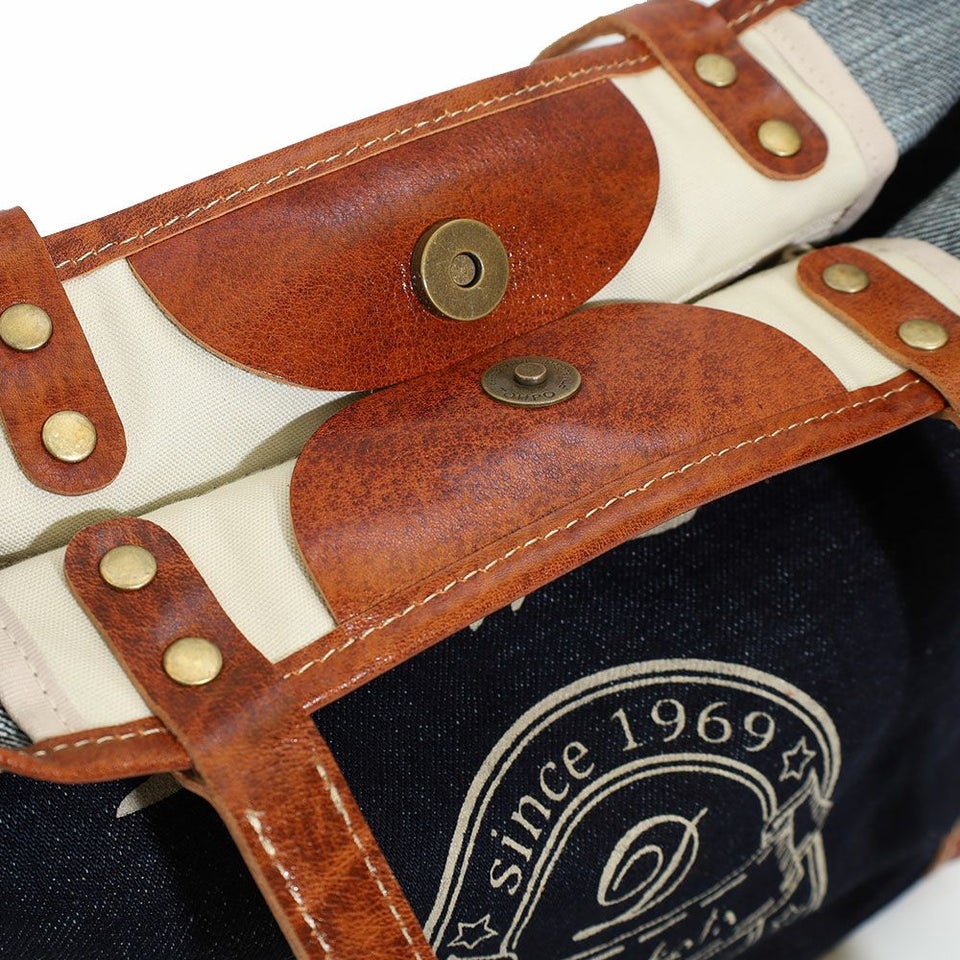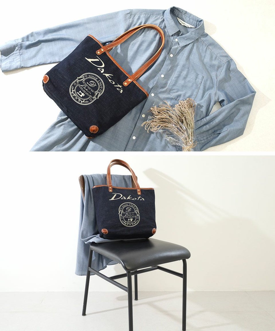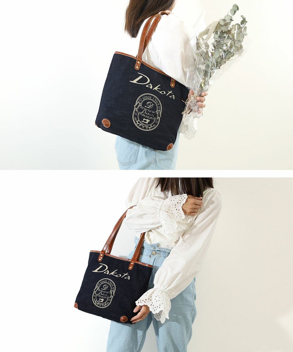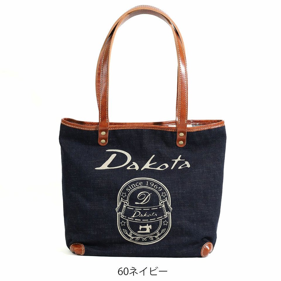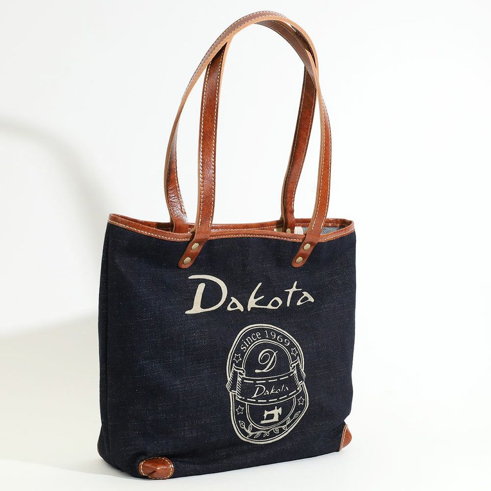 インディゴカラーの生地と白線のDakotaロゴが印象的なアンティーク調のカジュアルバッグ