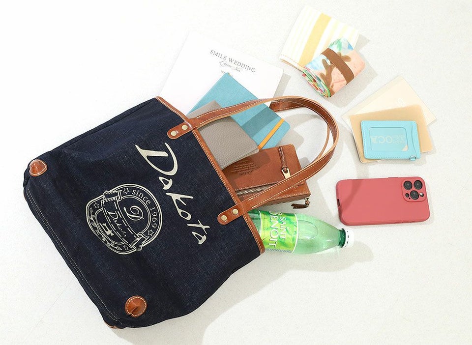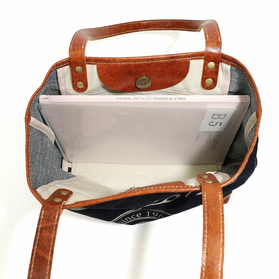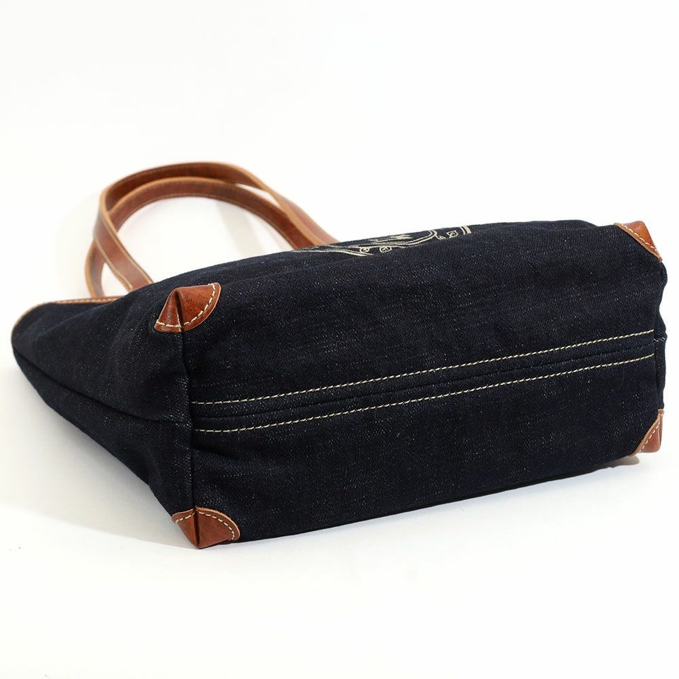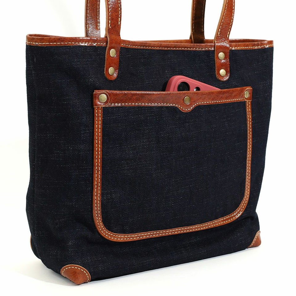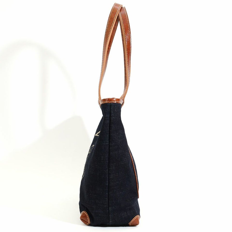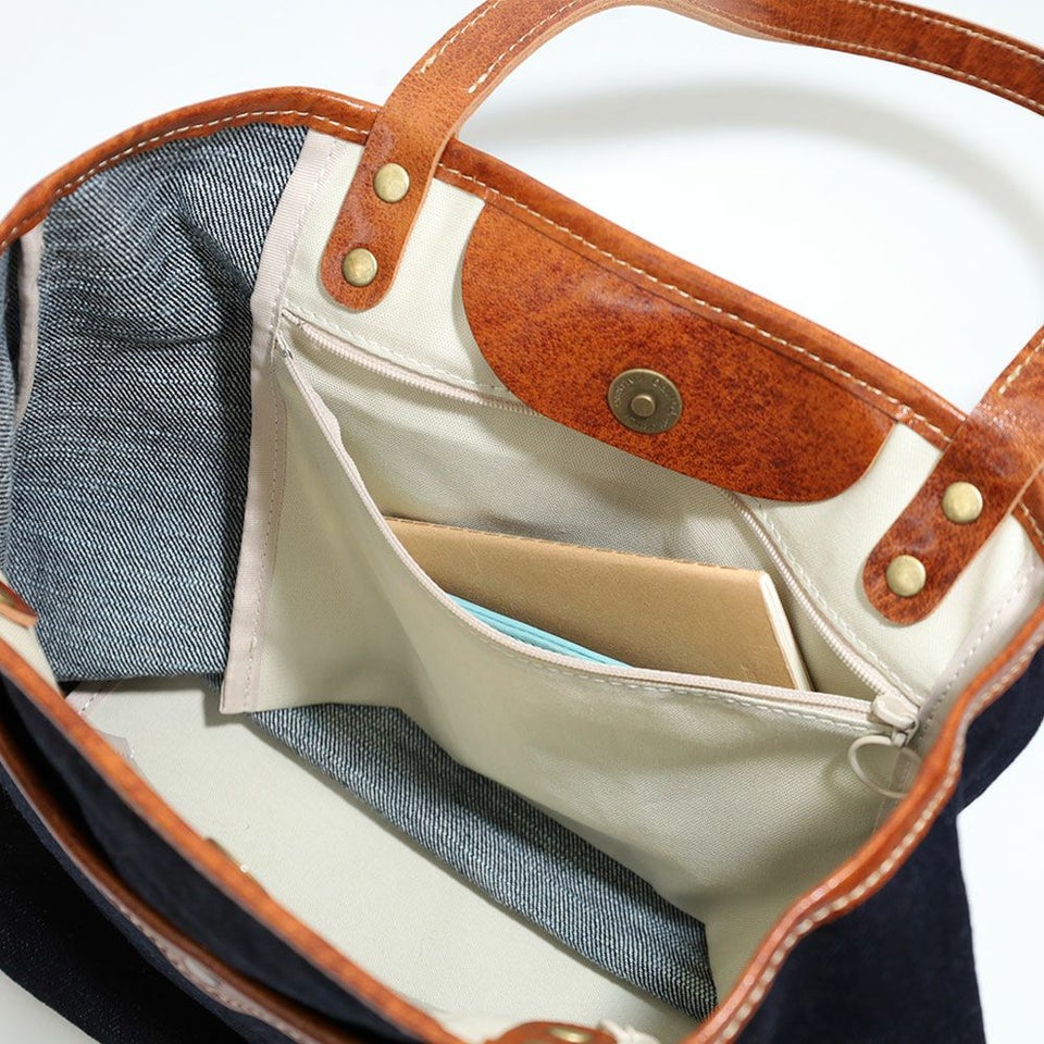 デニムの色合いと持ち手など一部にあしらった牛革でこなれ感を演出。